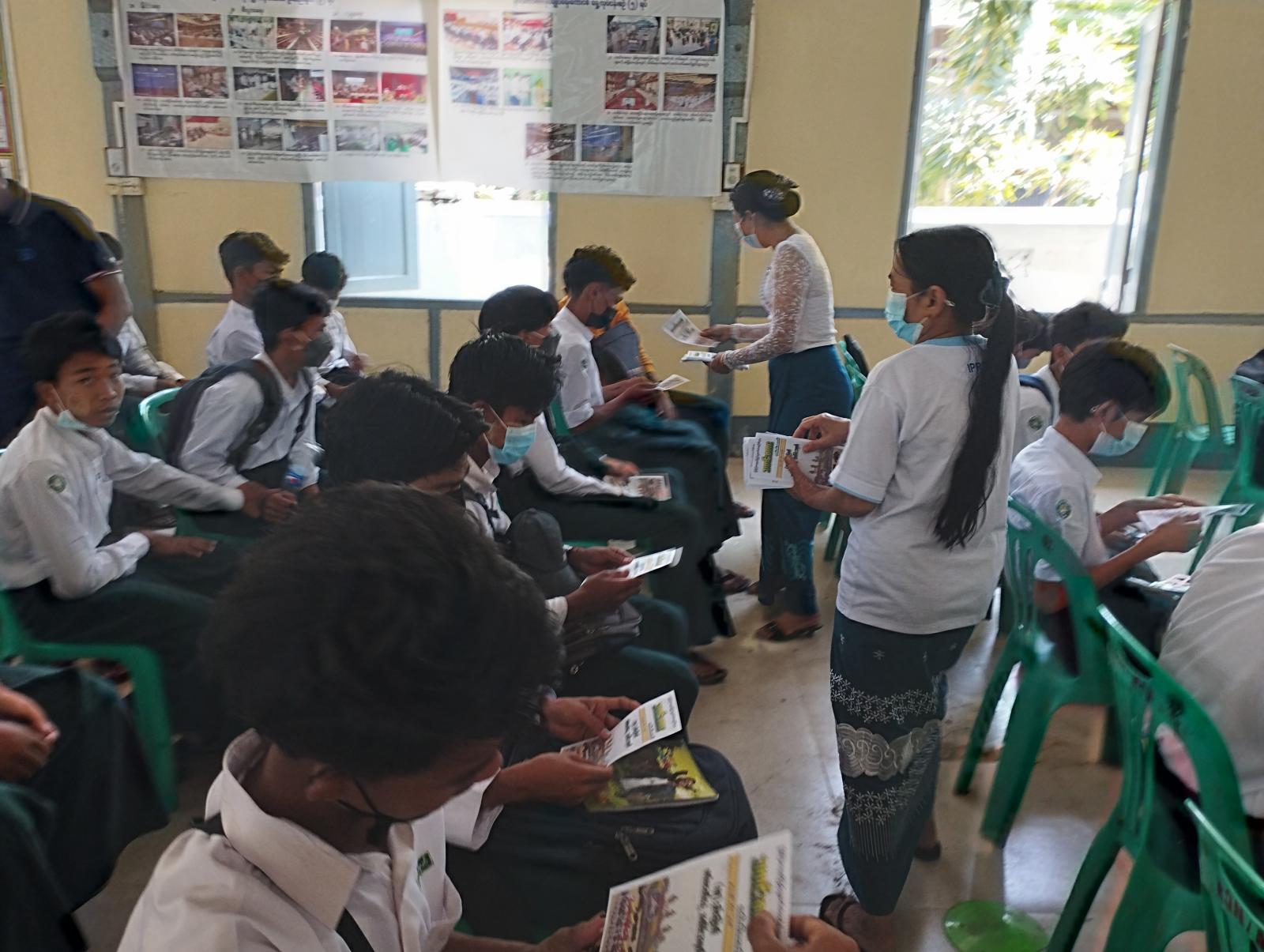ဧရာဝတီတိုင်းဒေသကြီး၊ မအူပင်ခရိုင်၊ မအူပင်မြို့နယ် အမှတ် (၁)အခြေခံပညာအထက်တန်းကျောင်း၌ မတ်လ ၂၇ ရက်နေ့တွင် ကျရောက်မည့် (၇၇)နှစ် မြောက် တပ်မတော်နေ့ အား ကြိုဆိုဂုဏ်ပြုသောအားဖြင့် သတင်းစကားလက်ကမ်းစာစောင်အား (အခမဲ့)ဖြန့်ဝေခဲ့ သည်။
