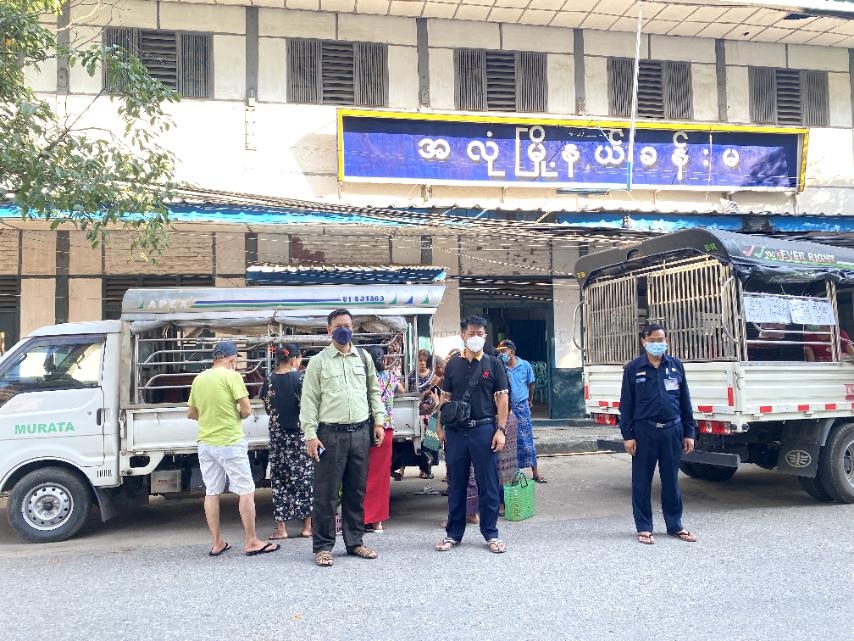 အဆိုပါစျေးရောင်းချရာနေရာသို့ မြို့နယ်စီမံအုပ်ချုပ်ရေးအဖွဲ့ ဥက္ကဋ္ဌ ဦးဆန်းထွန်း၊ မြို့နယ် စည်ပင်သာယာ အုပ်ချုပ်ရေးမှူး ဦးမောင်မောင်ထွန်းနှင့် စည်ပင် သာယာရေးဝန်ထမ်းများက စျေးလာရောက်ဝယ်ယူကြသူများ စနစ်တကျ ဝယ်ယူနိုင်ရေးအတွက် ကူညီဆောင်ရွက်ပေးခဲ့ ကြောင်းသိရသည်၊၊