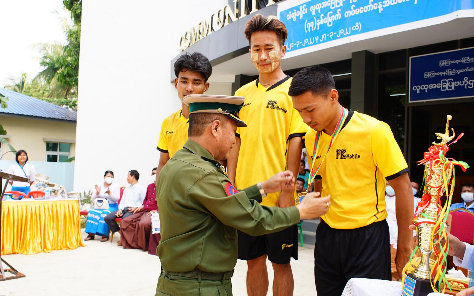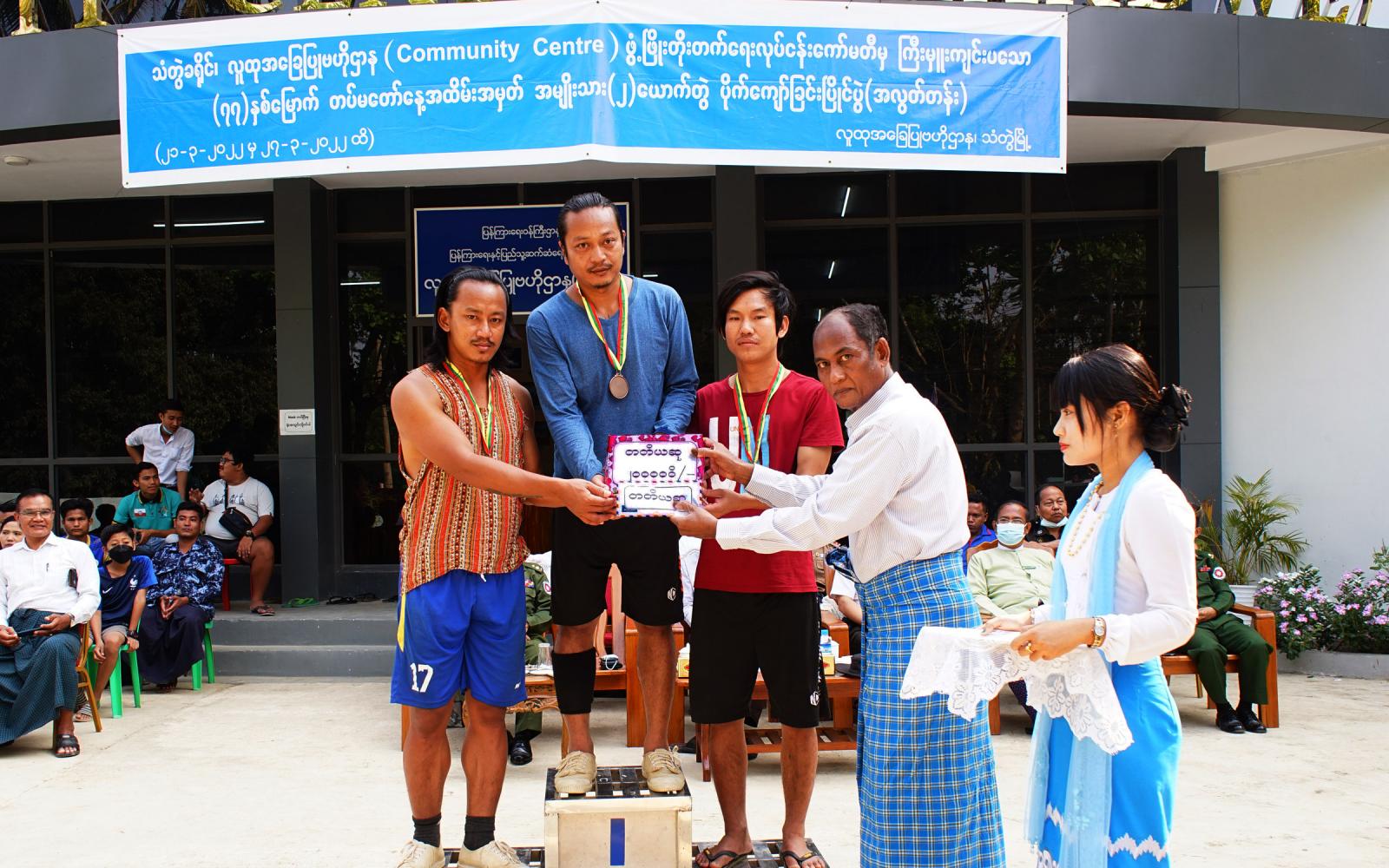 ဆက်လက်၍ဆုချီးပွဲကို ကျင်းပပြုလုပ်ရာ သံတွဲခရိုင်စီမံအုပ်ချုပ်ရေးအဖွဲ့၊ ခေတ္တဥက္ကဋ္ဌ ဒုတိယ ဗိုလ်မှူးကြီးဝင်းဗိုလ်က အမှာစကားပြောကြားသည်။ ထို့နောက် တတိယဆုရှိသော လင်းသာ(၁) အသင်းအား မြို့နယ်စီမံအုပ်ချုပ်ရေးအဖွဲ့ဝင်(၂)ဒေါက်တာစိုးမြင့်က တတိယဆုအားချီးမြှင့်ပေးပြီး ပွဲစဉ်တလျှာက် အကောင်းဆုံးဆုရရှိသည့် ရွှေဗဟိုအသင်း(B)မှမောင်မျိုးဇော်နှင့် ငမန်းခဲအသင်းမှ မောင်ထက်ဖြိုးအောင်တို့အား မြို့နယ်စီမံအုပ်ချုပ်ရေးအဖွဲ့ဥက္ကဋ္ဌ ဦးမောင်သာစိန်နှင့် ပြိုင်ပွဲ ကျင်းပရေး ကော်မတီဥက္ကဋ္ဌ ဦးအောင်ကျော်စိုးတို့က ချီးမြှင့်ပေးခဲ့သည်။ ထို့နောက်ဒုတိယဆု ရရှိသည့် ရွှေဗဟိုအသင်း(B)အသင်းအား သံတွဲခရိုင်လူထုအခြေပြုဗဟိုဌာန ဖွံ့ဖြိုးတိုးတက်ရေး လုပ်ငန်းကော်မတီနာယက ဦးလှဟန်က လည်ဆွဲဆုနှင့် ဒုတိယငွေသားဆုများချီးမြှင့်ပေးပြီး ပထမ ဆုရရှိသည့် ငမန်းခဲအသင်းအား သံတွဲခရိုင်စီမံအုပ်ချုပ်ရေးအဖွဲ့၊ ခေတ္တဥက္ကဋ္ဌ ဒုတိယဗိုလ်မှူးကြီး ဝင်းဗိုလ်က လည်ဆွဲဆု၊ ငွေသားဆုနှင့် ပထမတံခွန်စိုက် ဆုဖလားကြီးအား ချီးမြှင့်ပေးကြသည်။