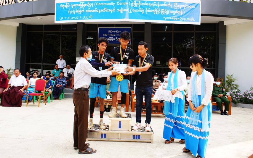 ဆက်လက်၍ ဆုချီးပွဲကိုကျင်းပပြုလုပ်ရာ သံတွဲခရိုင်စီမံအုပ်ချုပ်ရေးအဖွဲ့၊ ခေတ္တဥက္ကဋ္ဌ ဒုတိယ ဗိုလ်မှူးကြီးဝင်းဗိုလ်က အမှာစကား ပြောကြားသည်။ ထို့နောက် တတိယဆုရှိသော လင်းသာ(၁) အသင်းအား မြို့နယ်စီမံအုပ်ချုပ်ရေးအဖွဲ့ဝင်(၂)ဒေါက်တာစိုးမြင့်က တတိယဆုအား ချီးမြှင့် ပေး ပြီးပွဲစဉ်တလျှာက် အကောင်းဆုံးဆုရရှိသည့် ရွှေဗဟိုအသင်း (B)မှ မောင်မျိုးဇော်နှင့် ငမန်းခဲ အသင်းမှ မောင်ထက်ဖြိုးအောင်တို့အား မြို့နယ်စီမံအုပ်ချုပ်ရေးအဖွဲ့ဥက္ကဋ္ဌ ဦးမောင်သာစိန်နှင့် ပြိုင်ပွဲကျင်းပရေး ကော်မတီဥက္ကဋ္ဌ ဦးအောင်ကျော်စိုးတို့က ချီးမြှင့်ပေးခဲ့သည်။ ထို့နောက် ဒုတိယဆုရရှိသည့် ရွှေဗဟိုအသင်း(B)အသင်းအား သံတွဲခရိုင် လူထုအခြေပြုဗဟိုဌာန ဖွံ့ဖြိုး တိုးတက်ရေးလုပ်ငန်းကော်မတီနာယက ဦးလှဟန်က လည်ဆွဲဆုနှင့် ဒုတိယငွေသား ဆုများ ချီးမြှင့်ပေးပြီး ပထမဆုရရှိသည့် ငမန်းခဲအသင်းအား သံတွဲခရိုင်စီမံအုပ်ချုပ်ရေးအဖွဲ့၊ ခေတ္တ ဥက္ကဋ္ဌ ဒုတိယဗိုလ်မှူးကြီးဝင်းဗိုလ်က လည်ဆွဲဆု၊ ငွေသားဆုနှင့် ပထမတံခွန်စိုက် ဆုဖလား ကြီးအား ချီးမြှင့်ပေးကြသည်။