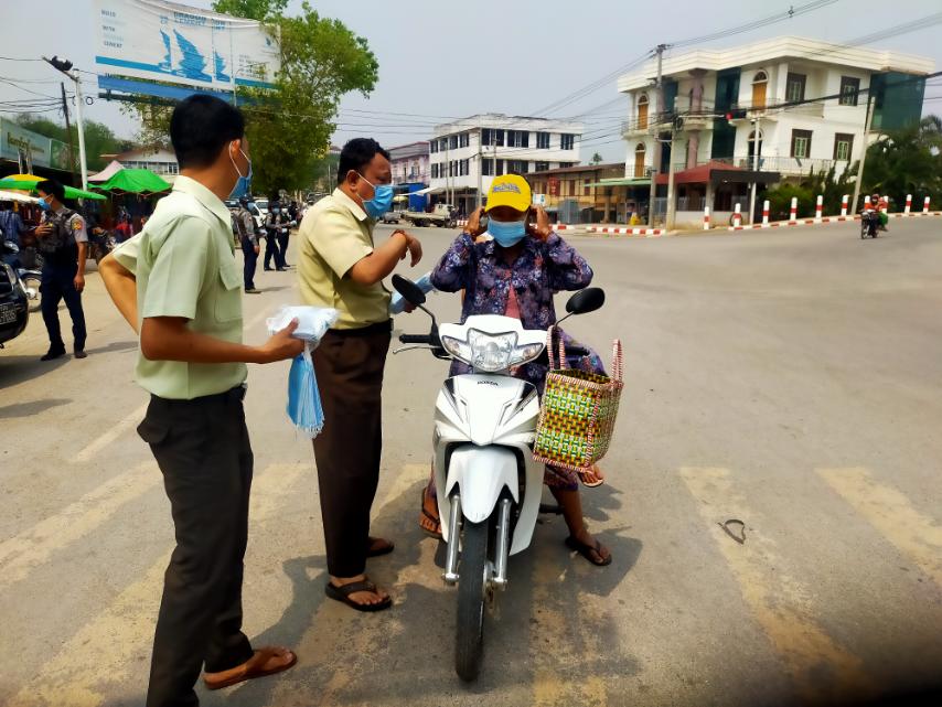 ကယားပြည်နယ်၊ လွိုင်ကော်မြို့၌ ပြည်သူများအနေဖြင့် အပြင်သို့သွားလာပါက မဖြစ်မနေ နှာခေါင်းစည်း(Mask) များ စနစ်တကျ တပ်ဆင် သွားလာမှုရှိစေရန် ဌာနဆိုင်ရာပူးပေါင်းအဖွဲ့ဖြင့် ယနေ့နံနက် ၁၀ နာရီမှ နံနက် ၁၁ နာရီအထိ သီရီမင်္ဂလာဈေးရှေ့နှင့် ဈေးအတွင်းရှိ ပြည်သူ များအား နှာခေါင်းစည်း(Mask)များ အခမဲ့ဖြန့်ဝေပေးဝေခဲ့ကြောင်း သိရသည်။