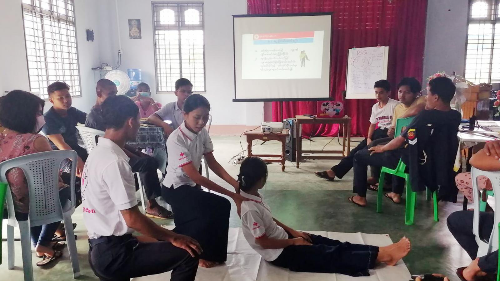 သင်တန်းတွင် မြန်မာနိုင်ငံကြက်ခြေနီအကြောင်း သိကောင်းစရာ၊ ရှေးဦးပြုစုခြင်းအခြေခံ သဘောတရား၊ လူနာဆန်းစစ်ခြင်း၊ စိတ်ပိုင်းဆိုင်ရာရှေးဦးပြုစုခြင်း၊ ဒဏ်ရာနှင့်သွေးယိုစီးခြင်း၊ သွေးဆုတ်သွေးလန့်ဖြစ်ခြင်း၊ မူးမေ့ခြင်း၊ သတိလစ်ခြင်း၊ အပူလောင်ခြင်းနှင့် အရည်ပူလောင် ခြင်း၊ အဆိပ်မိခြင်း၊ သတ္တဝါများကိုက်ခြင်း၊ အရိုး ကျိုးခြင်း၊ အဆစ်လွဲခြင်း၊ ကြွက်သားနှင့် ရိုးဆက်ကြောဒဏ်ရာ၊ ကိုင်တွယ်ခြင်းနှင့်သယ်ဆောင်နည်းများ၊ အခြေခံ အသက်ကယ် အထောက်အကူပြုနည်း၊ ပတ္တီးစည်းနည်း၊ လူနာသယ်ဆောင်နည်း စသည်ကို သင်ကြားပေး လျက်ရှိသည်။ သင်တန်းကို ကျောင်းသား/သူ လူငယ်မောင်မယ်များ၊ ပရဟိတလုပ်ငန်း ဆောင်ရွက်နေကြသူများ၊ မီးသတ်တပ်ဖွဲ့ဝင်များ၊ ကြက်ခြေနီတပ်ဖွဲ့ဝင်များ စုစုပေါင်း(၃၆) ဦး တက်ရောက်လျက်ရှိကြပြီး မြိတ်မြို့နယ် ကြက်ခြေနီသူနာပြုတပ်ဖွဲ့မှ နည်းပြဆရာများမှ သင်ကြားပေးလျက်ရှိကာ သင်တန်းကာလအနေဖြင့် မတ်လ(၂၆) ရက်မှ(၂၈)ရက်အထိ ဖွင့်လှစ်ခဲ့ကာ သင်တန်းတွင် စာတွေ့လက်တွေ့သင်ကြားပေး၍ သင်တန်းချိန် အပြီးတွင်စာမေး ပွဲ ဆန်းစစ်လွှာဖြေဆိုကြရမည်ဖြစ်ကြောင်း သိရသည်။