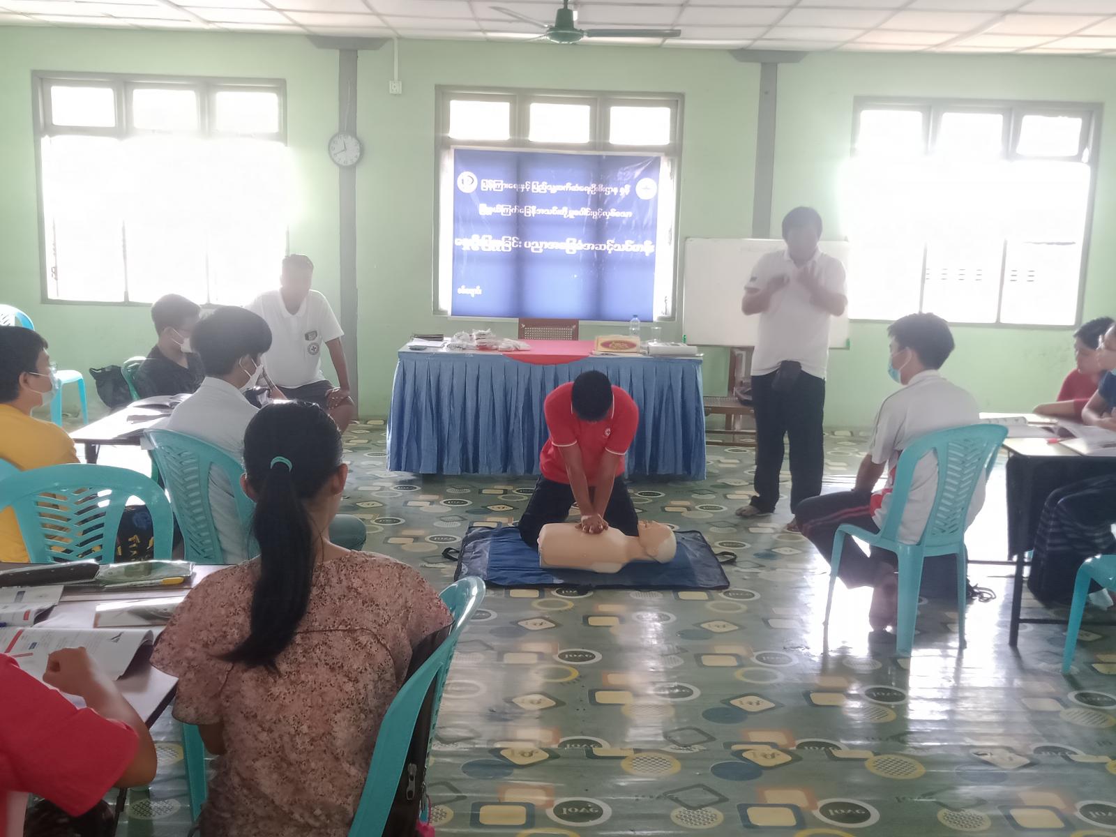 အဆိုပါသင်တန်းကို ကျန်းမာရေးဝန်ကြီးဌာန၏ လမ်းညွှန်ချက်များနှင့်အညီ ယမန်နေ့မှ ၃၀ရက်နေ့အထိ (၃)ရက်ကြာဖွင့်လှစ်မည်ဖြစ်ပြီး သင်တန်းသို့ သင်တန်းသား(၂၀)ဦး တက်လျက် ရှိကာ သင်တန်းတွင် ရှေးဦးပြုစုနည်း၊ အရေးပေါ် အသက်ကယ်နည်းများ၊ လက်တွေ့ပြုစုနည်း များနှင့် ဘေးအန္တရာယ် ကြုံတွေ့ရပါက ဆောင်ရွက်ရမည့် လုပ်ငန်းစဉ်များကို စာတွေ့/ လက်တွေ့ သရုပ်ပြသင်ကြား ပြသပေးသွားမည် ဖြစ်ကြောင်း သိရသည်။
