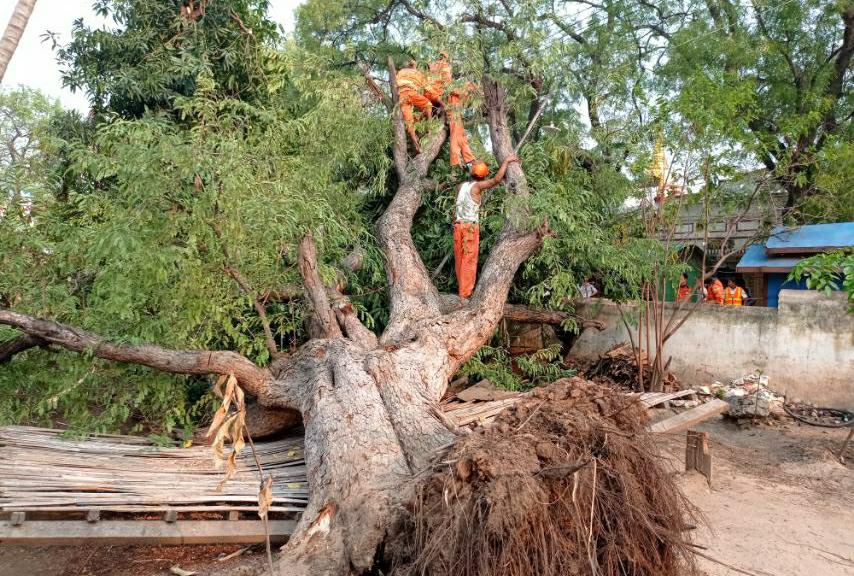 အဆိုပါမန်ကျည်းပင်လဲကျရာသို့ ညောင်ဦးမြို့နယ် မီးသတ်ဦးစီးမှူးဦကျော်မင်းသူနှင့်မီးသတ် ဝန်ထမ်းများ၊ အရန်မီးသတ်တပ်ဖွဲ့ဝင်များသည် ကျောင်းဝင်းအုတ်တံတိုင်းပေါ်နှင့် ဓာတ်အားလိုင်းပေါ်သို့ပိနေသည့် မန်ကျည်းပင်အား ဝိုင်းဝန်းရှင်းလင်းလျက်ရှိကြောင်း သိရသည်။ အဆိုပါ မန်ကျည်းပင်သည် ပင်စည်လုံးပတ် ၁၀ပေပတ်လည်ခန့်၊အမြင့် ပေ ၄၀ ခန့်ရှိပြီး နှစ်သက်တမ်း ၆၀ခန့်ရှိ မန်ကျည်းပင်ကြီးဖြစ်ကြောင်း၊မန်ကျည်းပင်လဲကျမှု ဖြစ်စဉ်ကြောင့် အဆောက်အဦ၊ လူနှင့်တိရစ္ဆာန်များ ထိခိုက်မှုတစုံတစ်ရာမရှိကြောင်းသိရပြီး မြို့နယ်မီးသတ်ဦးစီးမှူး ဦးကျော် မင်းသူ၊ ဦးဆောင်သော မီးသတ်တပ်ဖွဲ့ဝင်(၆)ဦး၊အ ထောက်အကူပြုယာဉ်(၁)စီး၊ အမှတ်(၅) အရန်မီးသတ်တပ်ဖွဲ့မှ တပ်ဖွဲ့ဝင်(၇)ဦးတို့ဖြင့် မြေလှန်လဲကျနေသည့် မန်ကျည်းပင်အား ရှင်းလင်းခဲ့ကြောင်း သိရသည်။