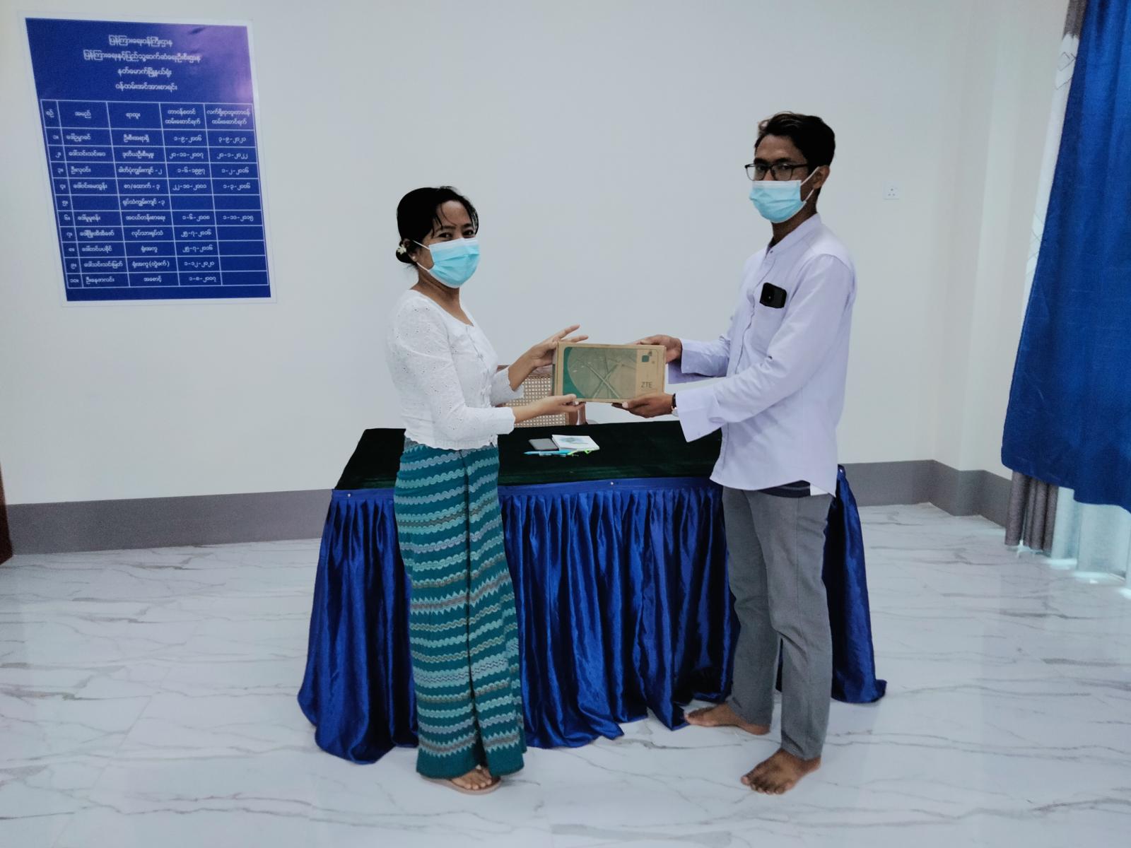 အဆိုပါ Wifi စက်အား Mytel Fiber ကုမ္ပဏီမှ တာဝန်ခံ ဦးရဲရင့်နောင်က ပေးအပ်လှူဒါန်း ခဲ့ရာ မြို့နယ် ပြန်ကြားရေးနှင့်ပြည်သူ့ဆက်ဆံရေးဦးစီးဌာန ဦးစီးအရာရှိ ဒေါ်ဥမ္မာခင်က မြို့နယ်လူထု အခြေပြုဗဟိုဌာန (Community Centre) အတွက် လက်ခံရယူခဲ့ကြောင်း သိရသည်။