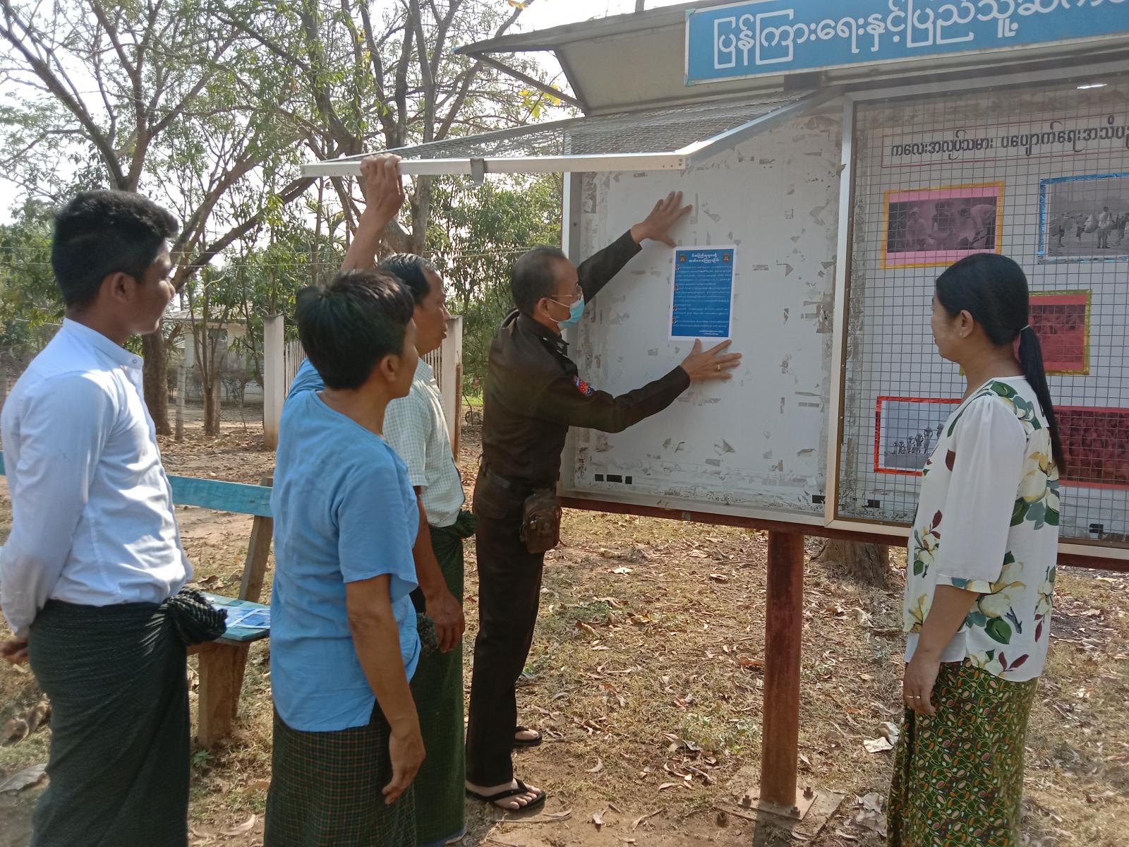 ထိုသို့ဆောင်ရွက်ရာတွင် အထွေထွေအုပ်ချုပ်ရေးဦးစီးဌာနမှ ဝန်ထမ်းများ၊ လူဝင်မှုကြီးကြပ်ရေးနှင့် ပြည်သူ့အင်အားဦးစီးဌာနမှ ဝန်ထမ်းများ၊ ရပ်/ကျေးအုပ်ချုပ်ရေးမှူးများပူးပေါင်း၍ မြို့ဝင် လမ်းဆုံး ၌ ပြည်သူများအား အသိပေးလက်ကမ်းစာစောင်များ ဖြန့်ဝေကြကာ ဈေးဆိုင်များနှင့် လူစည်ကားရာနေရာများတွင် အသိပေးကြော်ငြာများကပ်၍ အသိပညာပေးလုပ်များကို ဆောင်ရွက်ခဲ့ကြ ကြောင်းသိရသည်။