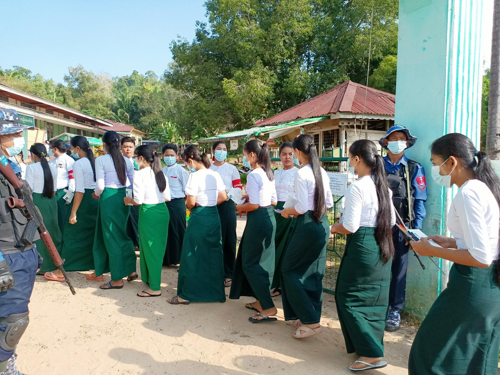တနင်္သာရီတိုင်းဒေသကြီး၊ ကျွန်းစုမြို့နယ်တွင် ၂၀၂၁-၂၀၂၂ ပညာသင်နှစ် တက္ကသိုလ်ဝင်တန်း စာမေးပွဲ ပထမရက် မြန်မာစာဘာသာကို ယနေ့နံနက်ပိုင်းက မြို့နယ်အတွင်းရှိ စာစစ်ဌာန(၅)ခု၌ ကျောင်းသား/သူများ အေးချမ်းစွာ ဝင်ရောက်ဖြေဆိုလျက်ရှိကြောင်း သိရသည်။