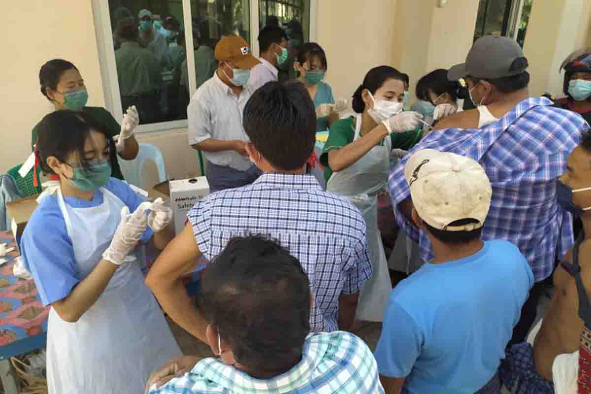 ယခုထိုးနှံပေးလျက်ရှိသော ကာကွယ်ဆေးမှာ Covi shleld အမျိုးအစားဖြစ်ပြီး အသက် (၁၈)နှစ်နှင့် အထက်ပြည်သူများကို ဆေးတစ်လုံးလျှင် လူ(၁၁)ဦး (11 Dose) ထိုးနှံလျက်ရှိရာ အသက်(၁၈)နှစ် နှင့် အထက် ပြည်သူ(၁၅၅၇၇၀)ဦးလျာထားပြီး ယနေ့တွင် (၁၃၂)ဦး ထိုးနှံပေးခဲ့ရာ စုစုပေါင်း (၈၄၂၅၀)ဦး ဆေးထိုးပြီး ဖြစ်ပြီး၊ ကျန်ရှိသူ (၇၁၅၂၀)ဦးဖြစ်ကြောင်း မြို့နယ်စီမံခန့်ခွဲမှုကော်မတီ ထံမှသိရသည်။ ကိုဗစ်-၁၉ကာကွယ် ဆေးထိုးခြင်းလုပ်ငန်းများကို မြို့နယ်ကျန်းမာရေးဝန်ထမ်းများ၊ မြို့နယ်စီမံခန့်ခွဲမှု ကော်မတီအဖွဲ့ဝင်များ၊ မြို့နယ်ကိုဗစ်-၁၉ကာကွယ်ထိန်းချုပ်ရေးကော်မတီ အဖွဲ့ ဝင်နှင့် လူမှုရေးအသင်းအဖွဲ့များ ပူးပေါင်းဆောင်ရွက် ပေးခဲ့ကြောင်း သိရသည်။