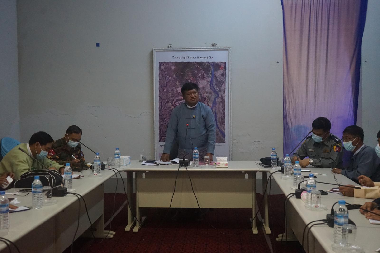အစည်းအဝေးတွင် ရှေးဟောင်းသုတေသနနှင့် အမျိုးသားပြတိုက်ဦးစီးဌာန၊ဒုတိယညွှန်ကြားရေး မှူးချုပ် ဦးညှိုမြင့်ထွန်းက ကမ္ဘာ့အမွေအနှစ်စာရင်းဖြစ်ရေးဆိုင်ရာ လုပ်ငန်းများနှင့်မြောက်ဦး ရှေးဟောင်းနယ်မြေ သန့်ရှင်းသာယာရေး စုပေါင်းအမှိုက်ကောက်ခြင်း(Campaing)၊အသိ ပညာ ပေးရေး (Awaremess) လုပ်ငန်း၊ မြောက်ဦးယဉ်ကျေးမှု အမွေအနှစ်ဒေသ၏ လှပသောပုံရိပ်များ ဓါတ်ပုံပြပွဲကျင်းပရေး၊ မြောက်ဦးဒေသ၏ လူနေမှုယာဉ်ကျေးမှုနှင့်ရှေးဟောင်းအဆောက်အအုံများ Land scape များရိုက်ကူးထားသော Video Clip တွင် အင်္ဂလိပ်ဘာသာအပြင် ရခိုင်ဘာသာနှင့် မြန်မာဘာသာများ Audio ထပ်မံရေးသွင်းပြီး ရခိုင်ပြည်နယ်အနှံ့ ဖြန့်ဝေရေးဆိုင်ရာကိစ္စရပ်များ တွင် မြို့နယ်လူထုပူးပေါင်းပါဝင်ဆောင်ရွက်နိုင်ရန် ရှင်းလင်းပြောကြားခဲ့ပြီးနောက် ခရိုင်/မြို့နယ် တာဝန်ရှိသူများ၊လူမှုရေးအသင်းအဖွဲ့များနှင့် ဂေါပကအဖွဲ့ဝင်များက လုပ်ငန်းများနှင့်ပတ်သက်၍ ဆွေးနွေးခဲ့ကြကြောင်း သိရသည်။