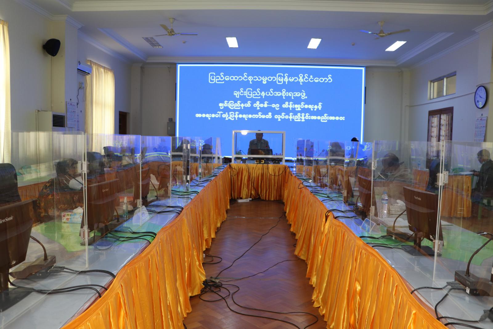 ချင်းပြည်နယ် ကိုဗစ်−၁၉ ထိန်းချုပ်ရေးနှင့် အရေးပေါ်တုံ့ပြန်ရေးကော်မတီ လုပ်ငန်းညှိနှိုင်းအစည်း အဝေးကို ယမန်နေ့နံနက် ၁၀ နာရီက ဟားခါးမြို့ ပြည်နယ်အစိုးရအဖွဲ့ရုံး အစည်းအဝေးခန်းမ၌ ကျင်းပရာ ပြည်နယ်ဝန်ကြီးချုပ် ဦးငွန်ဆန်းအောင် တက်ရောက်အမှာစကားပြောကြားသည်။
