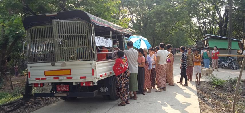 ရန်ကုန်မြောက်ပိုင်းခရိုင်၊ရွှေပြည်သာမြို့နယ်၌မြန်မာနိုင်ငံဆန်စပါးကုန်သည်များအသင်း၏စီစဉ်မှုဖြင့် ဆန်၊ ဆီ၊ ကြက်ဥနှင့် အခြေခံစားသောက်ကုန်များကို ယနေ့နံနက်ပိုင်းတွင် ရွှေပြည်သာ မြို့နယ်အမှတ်(၂၂)ရပ်ကွက်၌ လာရောက်ရောင်ချပေးလျက်ရှိကြောင်းသိရသည် ထိုသို့ရောင်ချ ပေးရာတွင် ဆန်ချော(၁)ပြည် ၂၀၀၀ကျပ် ဆန်ကြမ်း(၁)ပြည် ၁၂၀၀ ကျပ် ဆီ(၅၀)ကျပ်သား တဗူးလျှင်၄၀၀၀ကျပ် ကြက်ဥ ၁၀လုံးကတ်(၁)လျှင် ၁၅၀၀ကျပ်တို့ဖြင့် ရပ်ကွက်နေ ပြည်သူများအား ဈေးနှုန်းချိုသာစွာရောင်းချပေးခဲ့ကြောင်း သိရသည်။