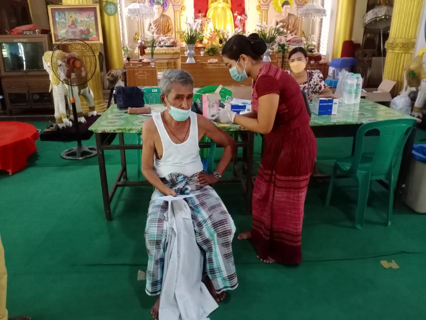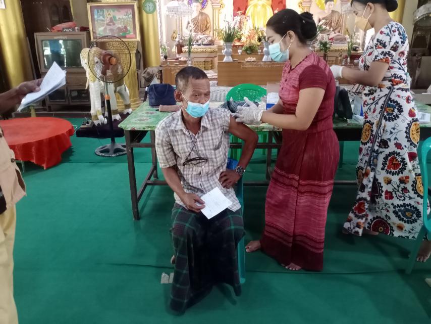 ရန်ကုန်တိုင်းဒေသကြီး၊ အရှေ့ပိုင်းခရိုင်၊ သင်္ဃန်းကျွန်းမြို့နယ်အတွင်း၌ ကာကွယ်ဆေး ထိုးနှံ ခြင်းကို ရဟန်းရှင်လူ ပြည်သူများအား သက်ဆိုင်ရာ ဦးစားပေးအစီအစဉ်အလိုက် ဦးတည်အုပ်စုများအား ကိုဗစ်-၁၉ရောဂါ ကာကွယ်ဆေးကို ထိုးနှံပေးလျက်ရှိပြီး ရာနှုန်းပြည့်ထိုးနှံပေးနိုင်ရေး ဆောင်ရွက်လျက်ရှိရာ ယနေ့ နံနက်၈ နာရီမှ ညနေ ၃ နာရီအထိ အကြောင်းအမျိုးမျိုးကြောင့် ကာကွယ်ဆေးမထိုးနှံရသေးသည့် ပြည်သူမျာရောဂါ COVID SHIELD ကိုဗစ်-၁၉ ရောဂါ ကာကွယ်ဆေးများကို သုဝဏ္ဏ(၂၉)ရပ်ကွက်၊ မင်းဒင်လမ်း ပုညကာရီဓမ္မာရုံနှင့် ကျိုက္ကစံ ဘုရားဝန်းအတွင်းရှိ ဓမ္မဗိမာန်တော်ဓမ္မာရုံတို့၌ ကိုဗစ်ရောဂါကာကွယ်ဆေးများကိုဆက်လက် ထိုးနှံပေးခဲ့ကြောင်း သိရသည်။