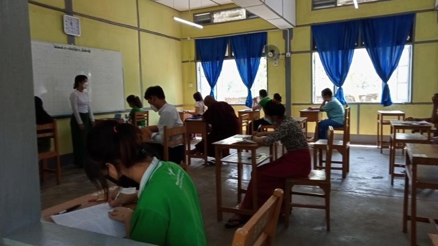 ရန်ကုန်တိုင်းဒေသကြီး၊ အနောက်ပိုင်းခရိုင်(ဗဟန်း)၊ စမ်းချောင်းမြို့နယ်တွင် ၂၀၂၂-ခုနှစ် တက္က သိုလ်ဝင် စာမေးပွဲများကို ကျန်းမာရေးဝန်ကြီးဌာနမှ ထုတ်ပြန်ထားသည့် ကိုဗစ်-၁၉ရောဂါ ကြိုတင်ကာကွယ်ရေး နည်းလမ်း ညွှန်ချက်များနှင့် အညီ ၂၀၂၂-ခုနှစ် မတ်လ(၃၁)ရက်နေ့မှ ဧပြီလ(၉) ရက် နေ့အထိ ကျင်းပလျက်ရှိရာ ယနေ့နံနက်ပိုင်းအချိန်က ၂၀၂၂-ခုနှစ် တက္ကသိုလ် ဝင်စာမေးပွဲ ပဥ္စမနေ့ ရူပဗေဒဘာသာရပ်ကို မြို့နယ်အတွင်းရှိ အထက-၂ကျောင်းတွင် ဆက်လက်ကျင်းပခဲ့ပြီး ကျောင်းသား/ကျောင်းသူ (၈၃)ရာခိုင်နှုန်း အေးချမ်းစွာ ဝင်ရောက် ဖြေဆိုခဲ့ကြောင်း မြို့နယ်ပညာရေး ဌာနမှ သိရသည်။