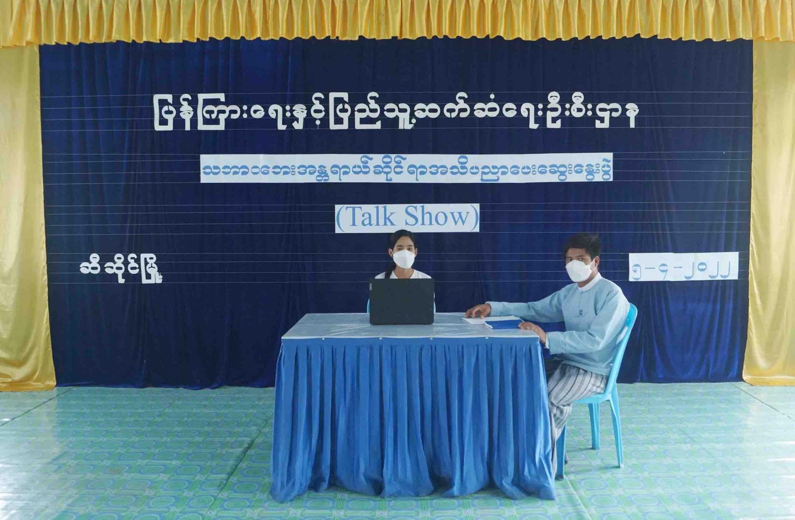 ရှေးဦးစွာ မြို့နယ်ပြန်ကြားရေးနှင့်ပြည်သူ့ဆက်ဆံရေးဦးစီးဌာန ဦးစီးအရာရှိ(တာဝန်ပေး) ဦးကြီးဒဲရယ်က Talk Show ကျင်းပ ပြုလုပ်ရခြင်း၏ ရည်ရွယ်ချက်များကို ရှင်းလင်းပြောကြားပြီး မြို့နယ် ဘေးအန္တရာယ်ဆိုင်ရာ စီမံခန့်ခွဲမှုဦးစီးဌာနမှ တာဝန်ခံ ဒေါ်သီတာဝင်းက ဌာန၏ရည်ရွယ်ချက်များ၊ လုပ်ငန်းတာဝန်များကို ရှင်းလင်းပြောကြားပြီး မိုးကြိုးအန္တရာယ်ဆိုင်ရာများနှင့် ပတ်သက်၍ ပြည်သူများ သိရှိလိုက်နာဆောင်ရွက်ရမည့် အကြောင်းအရာများနှင့် ဌာနမှဆောင်ရွက်ပေးရသည့် အခြေအနေများကို အကျယ်တဝင့် ရှင်းလင်းဆွေးနွေးခဲ့ကြောင်း သိရသည်။