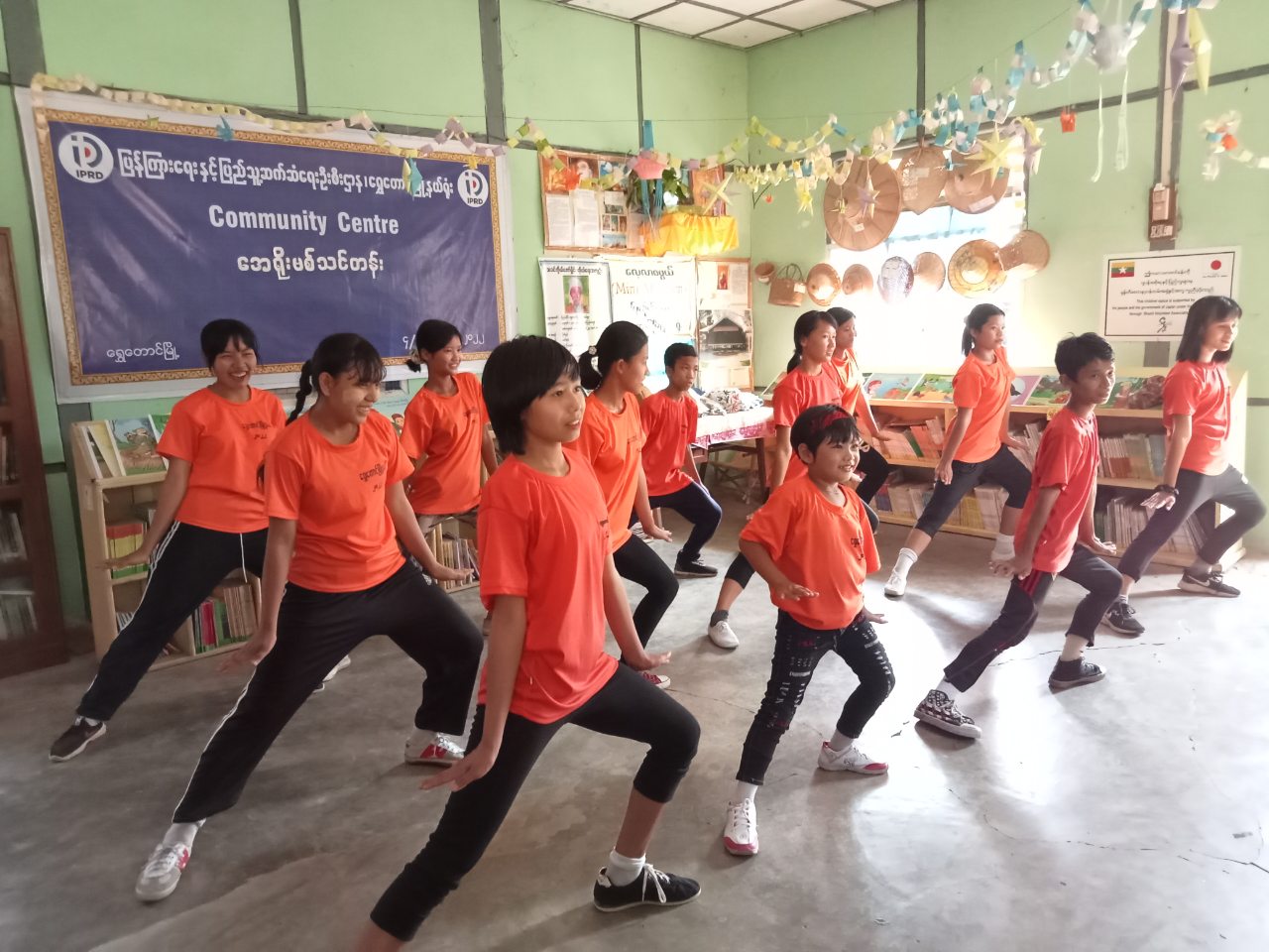 သင်တန်းသား / သူ လေးများက သင်တန်းမှ သင်ကြားပေးသည့် ကကွက်များဖြင့် အေရိုးဗစ် (Fitness Dance) ကပြခဲ့သည်။