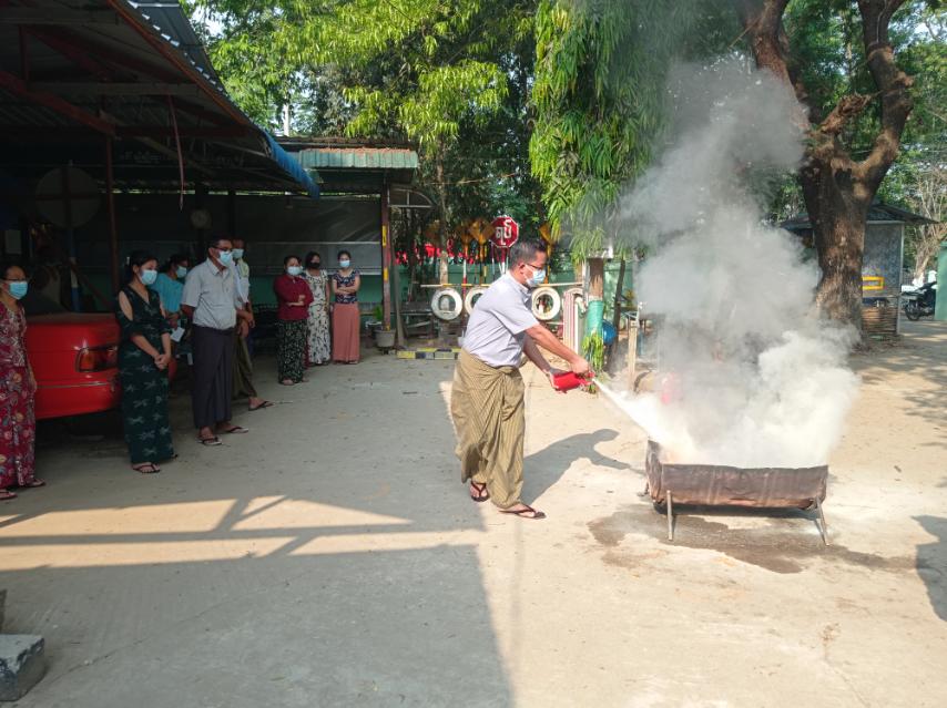 ရှေးဦးစွာ မြို့နယ်မီးသတ်ဦးစီးမှူး ဦးဇော်လွင်ဦးက လိုင်စင်လာရောက် ပြုလုပ်သူပြည်သူများအား မိမိတို့အိမ်အတွင်း ချက်ပြုတ် နေစဉ်ကာလ၌ ဆီမီးလောင်မှု ဖြစ်ပွားလာပါက ဆောင်ရွက်ရမည့် အခြေအနေများ၊ မိမိတို့နေအိမ်အတွင်း တပ်ဆင် အသုံးပြုလျက် ရှိသည့် လျှပ်စစ်မီးကြိုးများ ဆိုင်ရာသိကောင်းစရာများ၊ လျှပ်စစ်မီးမှတဆင့် မီးလောင်မှုဖြစ်ပွားလာပါက ဆောင်ရွက်ရမည့် အခြေအနေများ၊ ဂက်စ်အိုးဖြင့် ချက်ပြုတ်နေစဉ် ကာလအတွင်း သတိထားရမည့်အချက်များ၊ ရုံးမီးစက် အသုံးပြုမှုကို စနစ်တကျ ရှိစေရန်နှင့် လျှပ်စစ်မီးကို စနစ်တကျအသုံးပြုတတ်စေရန်၊ ဟောင်းနွမ်းနေသော ဝါယာကြိုးများ၊ မီးခလတ်များအား၊ အသစ်လဲလှယ်အသုံးပြုရန်၊ လောင်စာဆီ သိုလှောင်မှုများအား စစ်ဆေးခြင်း၊ အမှိုက်များကို စနစ်တကျ စွန့်ပစ်စေရန်၊ လျှပ်စစ်မီး၊ ဖယောင်းတိုင်မီးကို စနစ်တကျ ကိုင်တွယ်အသုံးပြုရန်၊ မီးသတ်ဆေးဗူးများနှင့် ကြိုတင်ကာကွယ်ထားရှိခြင်း၊ မီးသတိပေး ဆိုင်းဘုတ်များအား ချိတ်ဆွဲခြင်း၊ မီးသတ်လှေကား၊ မီးသတ်ချိတ်များ၊ ရေအိတ်၊ သဲအိတ်များ ထားရှိခြင်းစသည့် မီးဘေးကြိုတင် ကာကွယ်ရေး လုပ်ငန်းများကို ကွင်းဆင်း စစ်ဆေးဆောင်ရွက်ခဲ့ပြီး မီးငြိမ်းသတ်မှု သရုပ်ပြခြင်း၊ မီးသတ်ဆေးဘူးဖြင့် မီးငြှိမ်းသတ်မှု သရုပ်ပြခြင်း၊ မီးဘေးအန္တရာယ် ကြိုတင်ကာကွယ် တားဆီးရေးအတွက် အသိပညာပေးခြင်းများ ကိုအကြံပြု မှာကြားခဲ့ကြောင်း သိရသည်။