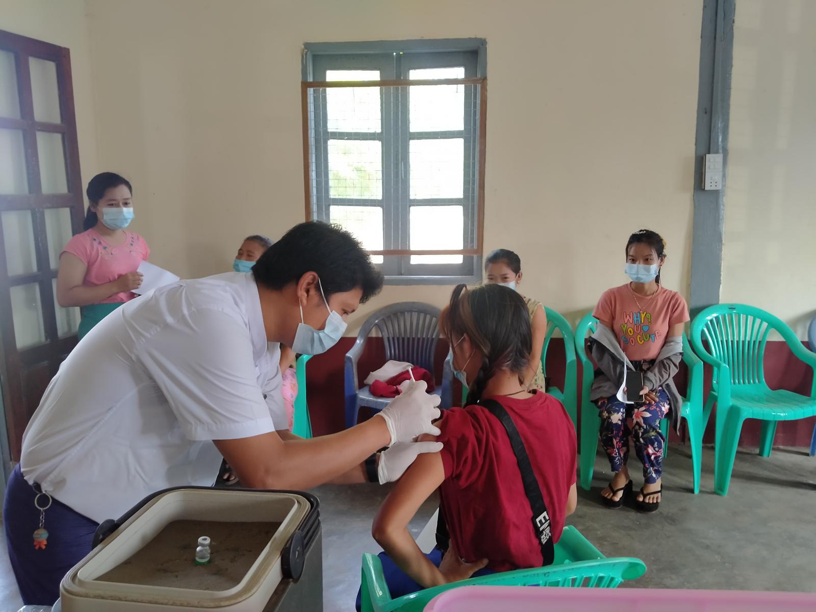ကာကွယ်ဆေးထိုးနှံခြင်းလုပ်ငန်းကို ပိုင်ကျုံမြို့ ကျေးလက်ကျန်းမာရေးဦးစီးဌာနမှတာဝန် ရှိသူများနှင့် ဌာနဆိုင်ရာဝန်ထမ်းများပူးပေါင်း၍ ကာကွယ်ဆေးလာရောက်ထိုးနှံသည့် ပြည်သူများ အဆင်ပြေလွယ်ကူစေရန်အတွက် ဝိုင်းဝန်းကူညီ ဆောင်ရွက်ပေးလျက် ရှိကြောင်း သိရသည်။