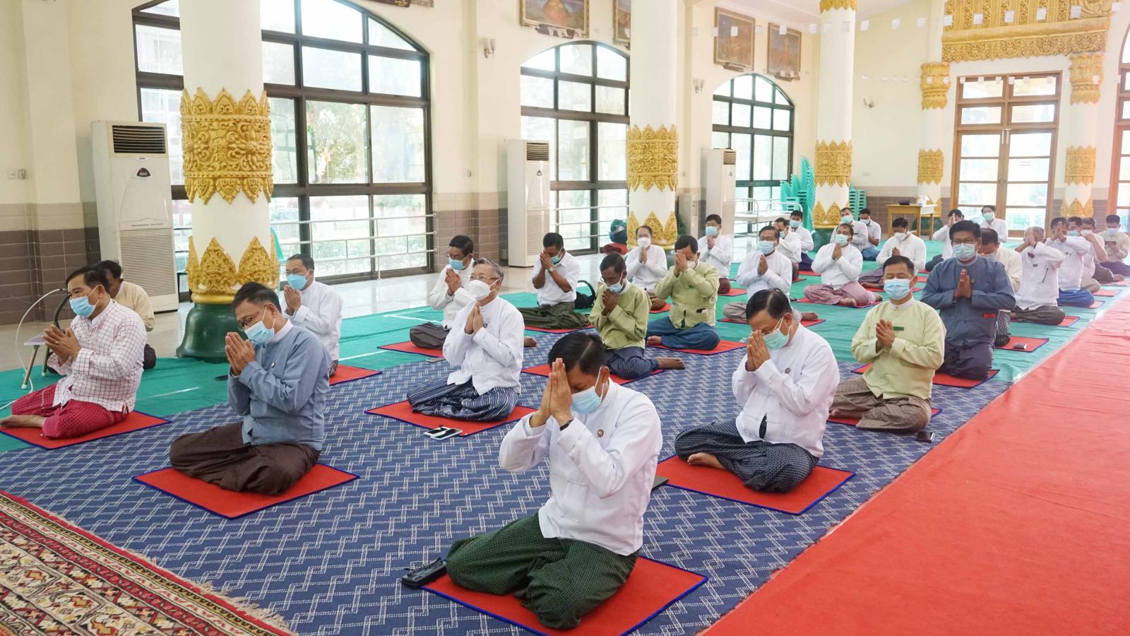 ရှေးဦးစွာတိုင်းဒေသကြီး ဝန်ကြီးချုပ်ဦးမြတ်ကို၊ တိုင်းဒေသကြီး တရားလွှတ်တော်တရားသူကြီးချုပ် ဒေါ်ပိုက်ပိုက်အေးနှင့်အစိုးရအဖွဲ့ဝင်ဝန်ကြီးများဖိတ်ကြားထားသောဧည့်သည်တော်များ က အခမ်း အနားကို “နမောတဿ”သုံးကြိမ်ရွတ်ဆို ဘုရားကန်တော့၍ ဖွင့်လှစ်ပြီး တိုင်းဒေသကြီး သံဃနာယ ကအဖွဲ့ ဥက္ကဋ္ဌဆရာတော် ဇေယျဝတီကျောင်း၊ ဘဒ္ဒန္တနန္ဒဝံသ (အဂ္ဂမဟာပဏ္ဍိတ) ထံမှ ငါးပါးသီလခံ ယူဆောက်တည်ခဲ့ကြသည်။