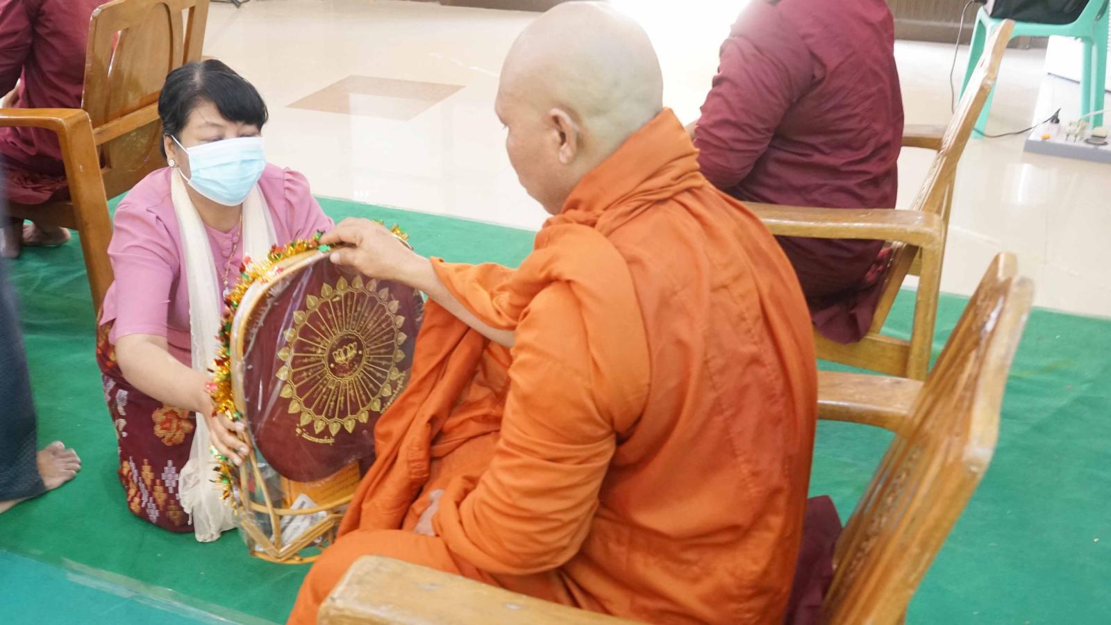 ထို့နောက် ဆရာတော်သံဃာတော် အရှင်သူမြတ်တို့အားဥပသကာများက ပရိတ်(ပန်း၊ရေ၊သဲ၊ ကျောက်၊ချည်)များ ဆက်ကပ်ပြီး အန္တရာယ်ကင်းပရိတ် တရားတော်များနာယူကြည်ညိုကာ တိုင်းဒေသကြီးဝန်ကြီးချုပ်ဦးမြတ်ကိုနှင့် တာဝန်ရှိသူများက လှူဘွယ်ပစ္စည်းများ ဆက်ကပ်လှူဒါန်းသည်။