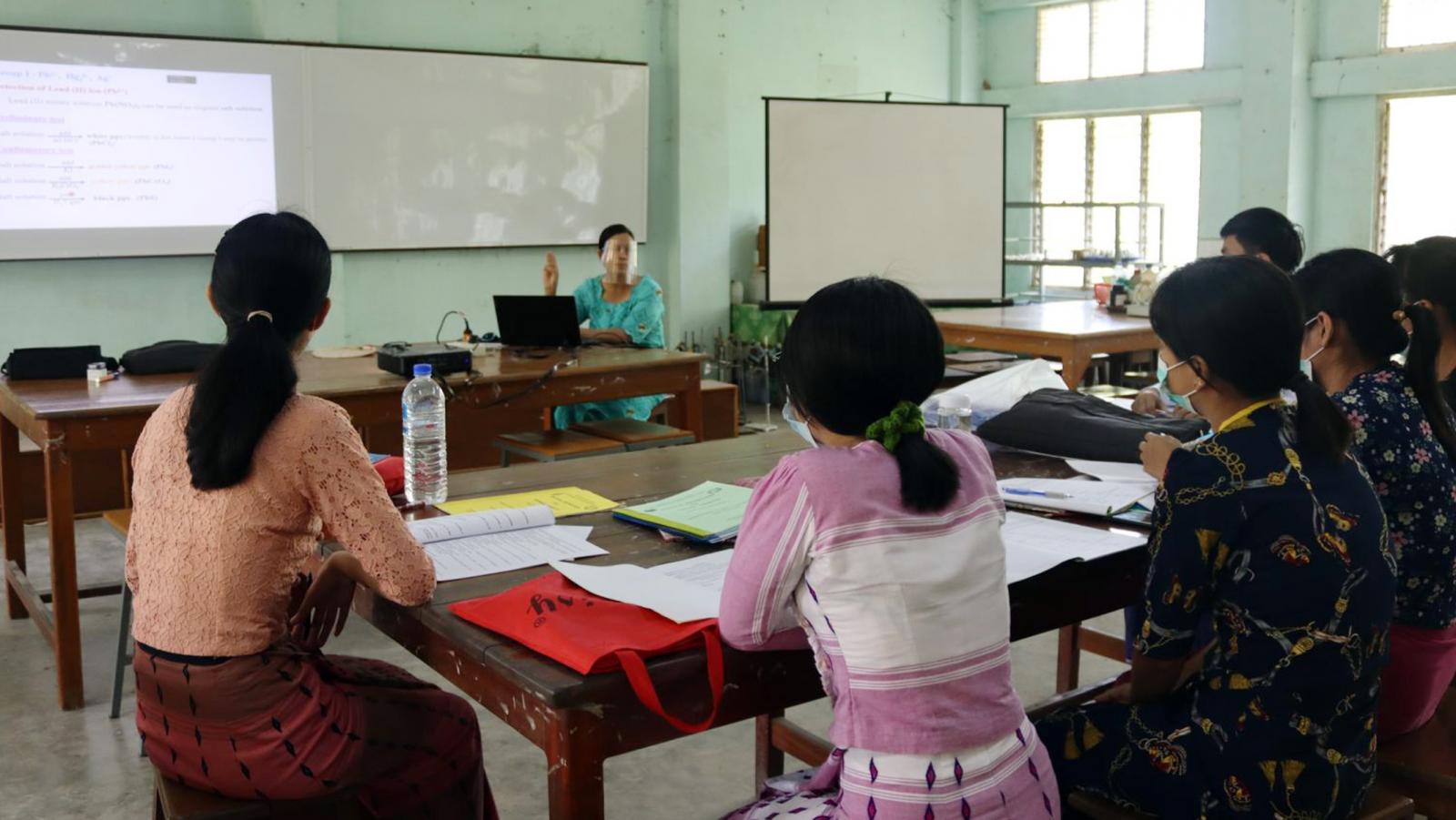 နည်းပြ/သရုပ်ပြ၊ ဆရာ ဆရာမများအား သင်ကြားပို့ချမှုများ အရည်အသွေး မြှင့်တင်နိုင်ရေးအတွက် ဘာသာရပ်ဆိုင်ရာမွမ်းမံသင်တန်းများကို ဧပြီလ(၁၈)ရက်မှ(၂၂)ရက်အထိ ဘာသာရပ် သင်ကြားရေးဌာန အသီးသီးရှိ နည်းပြ၊ သရုပ်ပြ၊ ဆရာ၊ဆရာမများအား သက်ဆိုင်ရာ ပါမောက္ခ (ဌာနမှူး)၊ ပါမောက္ခ၊ တွဲဖက်ပါမောက္ခများနှင့် ဝါရင့် ကထိက ဆရာ၊ ဆရာမများက သင်ကြား ပို့ချပေးလျက်ရှိကြကြောင်း သိရသည်။