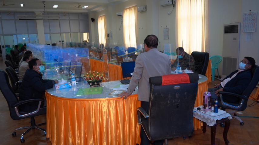 ချင်းပြည်နယ် ကိုဗစ်-၁၉ ထိန်းချုပ်ရေနှင့် အရေးပေါ်တုံ့ပြန်ရေးကော်မတီ လုပ်ငန်းညှိနှိုင်း အစည်း အ ဝေးကို ယနေ့ နံနက် ၁၀ နာရီက ဟားခါးမြို့ ပြည်နယ်အစိုးရအဖွဲ့ရုံး အစည်းအဝေးခန်းမ၌ ကျင်းပရာ ပြည်နယ်ဝန်ကြီးချုပ် ဦးငွန်ဆန်းအောင် တက်ရောက်အမှာစကားပြောကြားသည်။