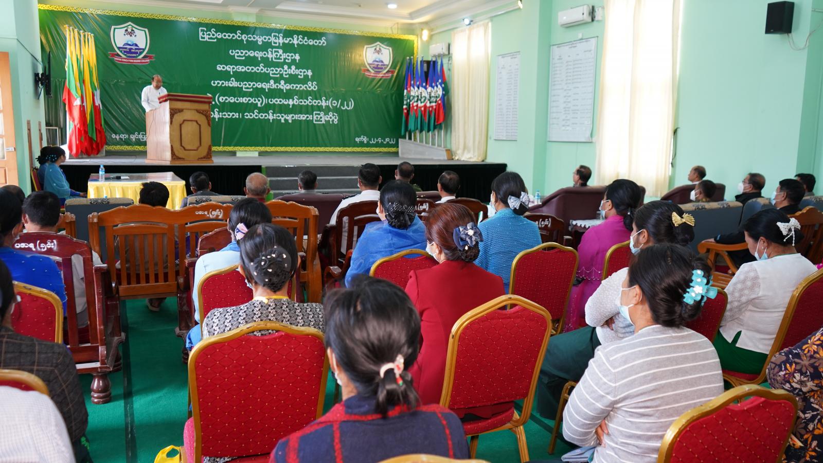 ဟားခါးပညာရေးဒီဂရီကောလိပ်၏ ၂၀၂၁−၂၀၂၂ ပညာသင်နှစ်၊ ပညာရေးဘွဲ့ (စာပေးစာယူ)၊ ပထမနှစ် သင်တန်း (၁/၂၂) သင်တန်းသား၊ သင်တန်းသူများအား ကြိုဆိုပွဲအခမ်းအနားကို ယမန်နေ့ မွန်းလွဲ ၁ နာရီက ဟားခါးဒီဂရီကောလိပ်၊ စားရိပ်သာဆောင်၌ ကျင်းပပြုလုပ်ရာ ပြည်နယ် ဝန်ကြီးချုပ် ဦးငွန်ဆန်းအောင် တက်ရောက် အမှာစကားပြောကြားသည်။