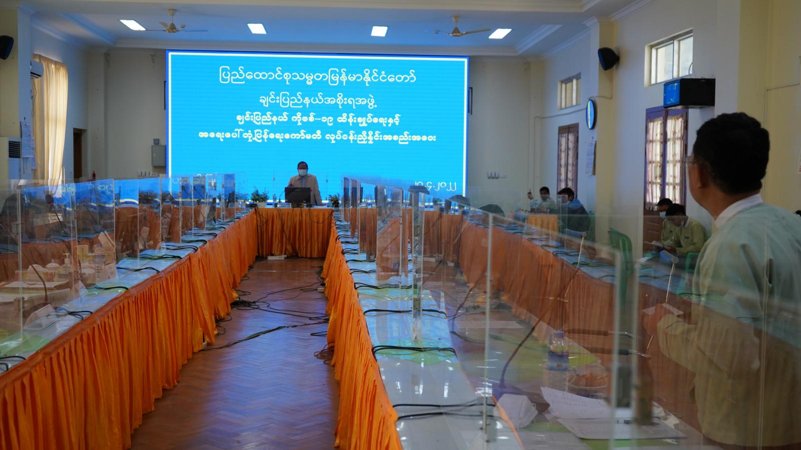 ထို့နောက် ပြည်နယ်ပြည်သူ့ကျန်းမာရေးနှင့် ကုသရေးဦးစီးဌာနမှူး ဒေါက်တာ အောင်မြင့်ဦးက ချင်းပြည်နယ်အတွင်း ကိုဗစ်−၁၉ ရောဂါကာကွယ်၊ထိန်းချုပ်၊ ကုသရေး လုပ်ငန်းများ ဆောင်ရွက်မှု၊ အသက်(၁၈)နှစ်အထက် ကိုဗစ်−၁၉ ရောဂါကာကွယ်ဆေးထိုးနှံပြီးစီးမှု အခြေအနေ၊ ကိုဗစ်−၁၉ ရောဂါကာကွယ်ဆေး အမျိုးအစားအလိုက် ကာကွယ်ဆေးရရှိ၊သုံးစွဲ၊ လက်ကျန်စာရင်း အခြေအနေ၊ မြို့နယ်အလိုက် ကိုဗစ်−၁၉ ရောဂါကာကွယ်ဆေးနှင့် ဆေးပစ္စည်းရောက်ရှိမှုအခြေအနေ ၊ တွန်းဇံမြို့၊ ကျီခါးမြို့နှင့် ကန်ပက်လက်မြို့တို့အတွက် အောက်ဆီဂျင် Plantများ ပို့ဆောင်နိုင်ရေး ဆောင်ရွက်ထားမှု အခြေအနေများကို Power Point ဖြင့် ရှင်းလင်းတင်ပြပြီး တက်ရောက်လာကြ သည့်ဌာနဆိုင်ရာ တာဝန်ရှိသူများက ကျောင်းသား၊ကျောင်းသူများ ကာကွယ်ဆေးထိုးနှံပြီးစီးမှုနှင့် ဆက်လက်ထိုးနှံရန် ဆောင်ရွက်မည့်အစီအမံများ၊ မြို့နယ်အလိုက် ကာကွယ်ဆေးထိုးနှံမှုစာရင်းကို VMIS စနစ်တွင် စာရင်းဖြည့်သွင်းနေမှု အခြေအနေများကို ရှင်းလင်း တင်ပြကြသည်။