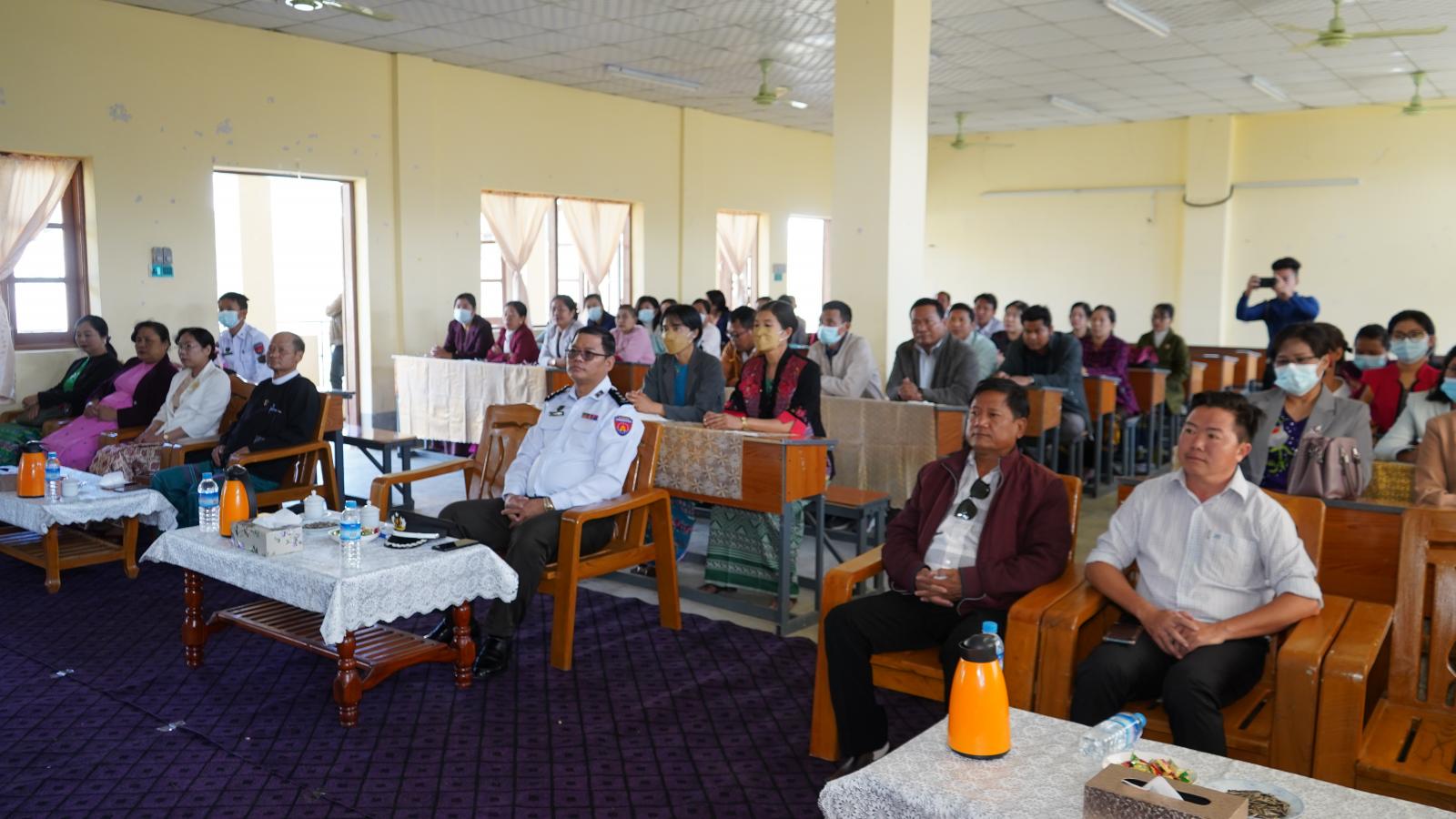 အခမ်းအနားတွင် ချင်းပြည်နယ်တရားလွှတ်တော် တရားသူကြီးချုပ် ဦးနေစိုး၊ ပြည်နယ်လူမှုရေးရာဝန်ကြီး ဦးသန့်ဇင်၊ ဟားခါးတက္ကသိုလ် ဒုတိယပါမောက္ခချုပ်ဆရာကြီး ဒေါက်တာဇော်မင်းသိန်းနှင့် ဆရာ၊ ဆရာမများ တက်ရောက်ကြပြီး ဟားခါးတက္ကသိုလ် ဒုတိယပါမောက္ခချုပ်ဆရာကြီးက ကြိုဆိုစကားပြောကြားပြီး ပြည်နယ်ဝန်ကြီးချုပ်ကိုယ်စား ပြည်နယ်လူမှုရေးရာဝန်ကြီးက ကြိုဆို စကားနှင့် သြဝါဒ အမှာစကားပြောကြားသည်။