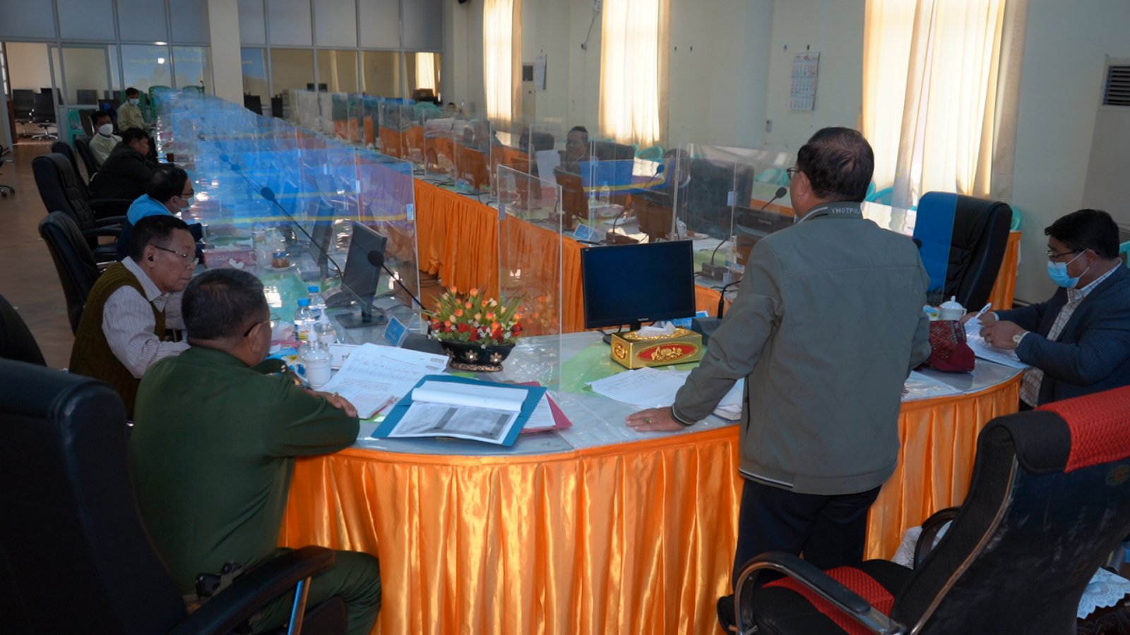 ယင်းနောက် တင်ပြချက်များအပေါ် စီးပွားရေးရာဝန်ကြီး ဦးဟန်ကျင့်ဇမ်းနှင့် ပြည်နယ်ဥပဒေချုပ် ဦးဆွန်ဒုတ်ကျင်တို့က အကြံပြုဖြည့်စွက်ဆွေးနွေးကြပြီး ပြည်နယ်အစိုးရအဖွဲ့ အတွင်းရေးမှူး ဦးမောင်မောင်ဆန်းက ပြည်နယ်အတွင်း ကိုဗစ်−၁၉ ရောဂါကာကွယ် ထိန်းချုပ်ကုသရေးလုပ်ငန်းများနှင့် ကိုဗစ်−၁၉ ရောဂါ ကာကွယ်ဆေးထိုးလုပ်ငန်းများ ဆောင်ရွက်ရာတွင် အချို့မြို့နယ်များတွင် လုံခြုံရေးအခြေအနေကြောင့် ခက်ခဲစွာ ဆောင်ရွက်ရခြင်းနှင့် အချို့မြို့နယ်များတွင် ဝန်ထမ်းအင်အားနည်းပါးခြင်း စသည့် အခက်အခဲများရှိသော်လည်း အတတ်နိုင်ဆုံး ကြိုးစားဆောင်ရွက်နေကြသည့်အတွက် ကာကွယ်ဆေးထိုးနှံပြီးစီးမှု ရာခိုင်နှုန်းတိုးတက်အောင် ဆောင်ရွက်နိုင်မှုနှင့်ပတ်သက်၍ ဖြည့်စွက်ဆွေးနွေးပြီး ပြည်နယ်ဝန်ကြီးချုပ်နှင့် အနောက်မြောက်တိုင်းစစ်ဌာနချုပ် ဒုတိယတိုင်းမှူး ဗိုလ်မှူးချုပ် မျိုးထွဋ်လှိုင်တို့က လိုအပ်ချက်များ ပေါင်းစပ်ညှိနှိုင်း ဆောင်ရွက်ပေးကာ ပြည်နယ်ဝန်ကြီးချုပ်က နိဂုံးချုပ်အမှာစကား ပြောကြားခဲ့ကြောင်း သိရသည်။