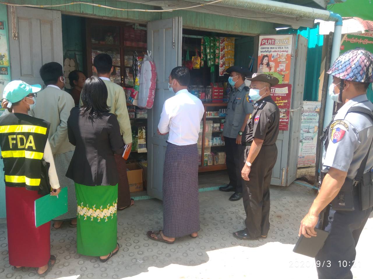 အဆိုပါ စစ်ဆေးမှုတွင် အထွေထွေအုပ်ချုပ်ရေး ဦးစီးဌာန၊ မြန်မာနိုင်ငံရဲတပ်ဖွဲ့၊ မွေးမြူရေးနှင့်ကုသရေး ဦးစီးဌာန၊ တိုင်းရင်းဆေးပညာဦးစီးဌာန၊ အစားအသောက်နှင့် ဆေးဝါးကွက်ကဲရေး ဦးစီးဌာနနှင့် စည်ပင်သာယာရေး အဖွဲ့မှ ဝန်ထမ်းများက ပူးပေါင်းစစ်ဆေးခြင်း ဖြစ်ကြောင်း သိရသည်။