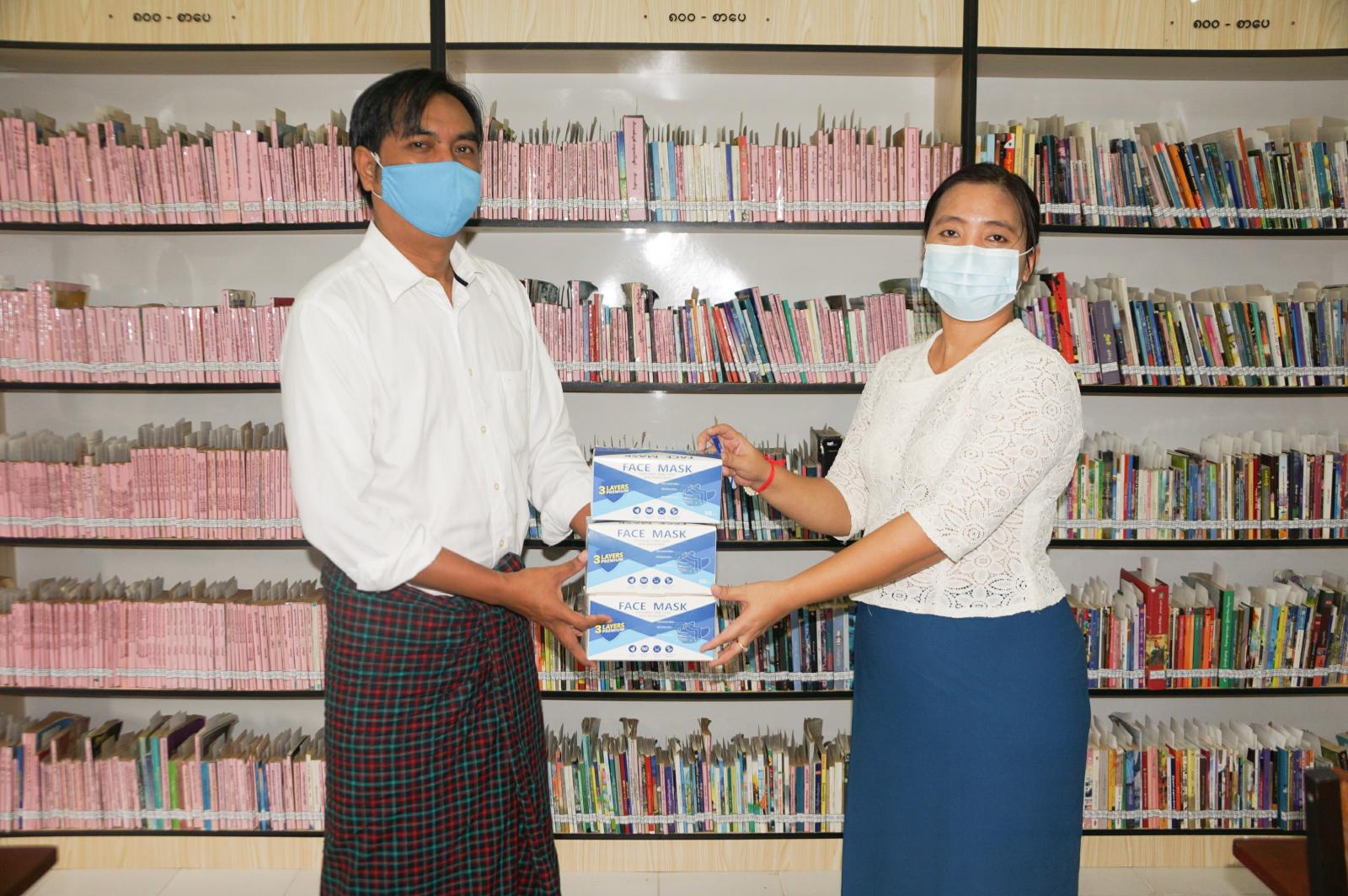 ကိုဗစ်-၁၉ရောဂါ ကူးစက်ပြန့်ပွါးမှု လျော့နည်းစေရေး အတွက်ရည်ရွယ်ကာ၊ ရန်ကုန်အနောက်ပိုင်းခရိုင်၊ ပြန်ကြားရေးနှင့် ပြည်သူ့ဆက်ဆံရေး ဦးစီးဌာန (ဗဟန်း) Community Centre သို့ ယနေ့နံနက်ပိုင်းက Save the Library in Myanmar စာကြည့်တိုက်များ ကွန်ရက် တည်ထောင်သူ ဦးမောင်မောင်စိုးက Mask များ လာရောက် လှူဒါန်းရာ၊ ခရိုင်ပြန်ကြားရေးနှင့်ပြည်သူ့ဆက်ဆံရေးဦးစီးဌာန၊ ဦးစီးအရာရှိဒေါ်ခိုင်ဖြိုးလင်းက လက်ခံရယူပြီး ကျေးဇူးတင် စကားပြန်လည်ပြောကြားခဲ့သည်။