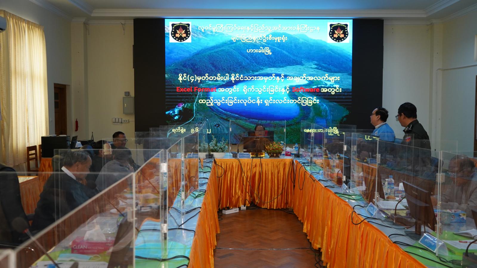 ချင်းပြည်နယ်အစိုးရအဖွဲ့ဝင်များနှင့် ပြည်နယ်အဆင့် ဌာနဆိုင်ရာတာဝန်ရှိသူများ၏ နိုင်ငံသားစိစစ်ရေးကတ်ပြားထုတ်ပေးခြင်း၊ မှတ်ပုံတင် နိုင်(၄) စာရင်းများအား Excel Format ဖြင့် ရိုက်သွင်းခြင်းနှင့် Software အတွင်း ထည့်သွင်းခြင်းဆိုင်ရာ လုပ်ငန်းညှိနှိုင်းအစည်းအဝေးကို ယနေ့ နံနက် ၁၀ နာရီက ဟားခါးမြို့ ပြည်နယ်အစိုးရအဖွဲ့ရုံး အစည်းအဝေးခန်းမ၌ ကျင်းပသည်။