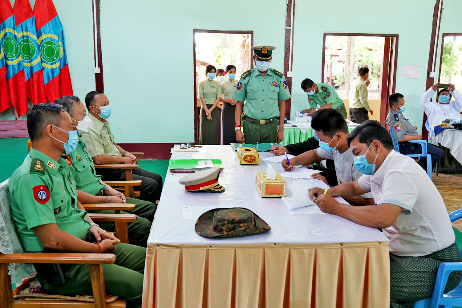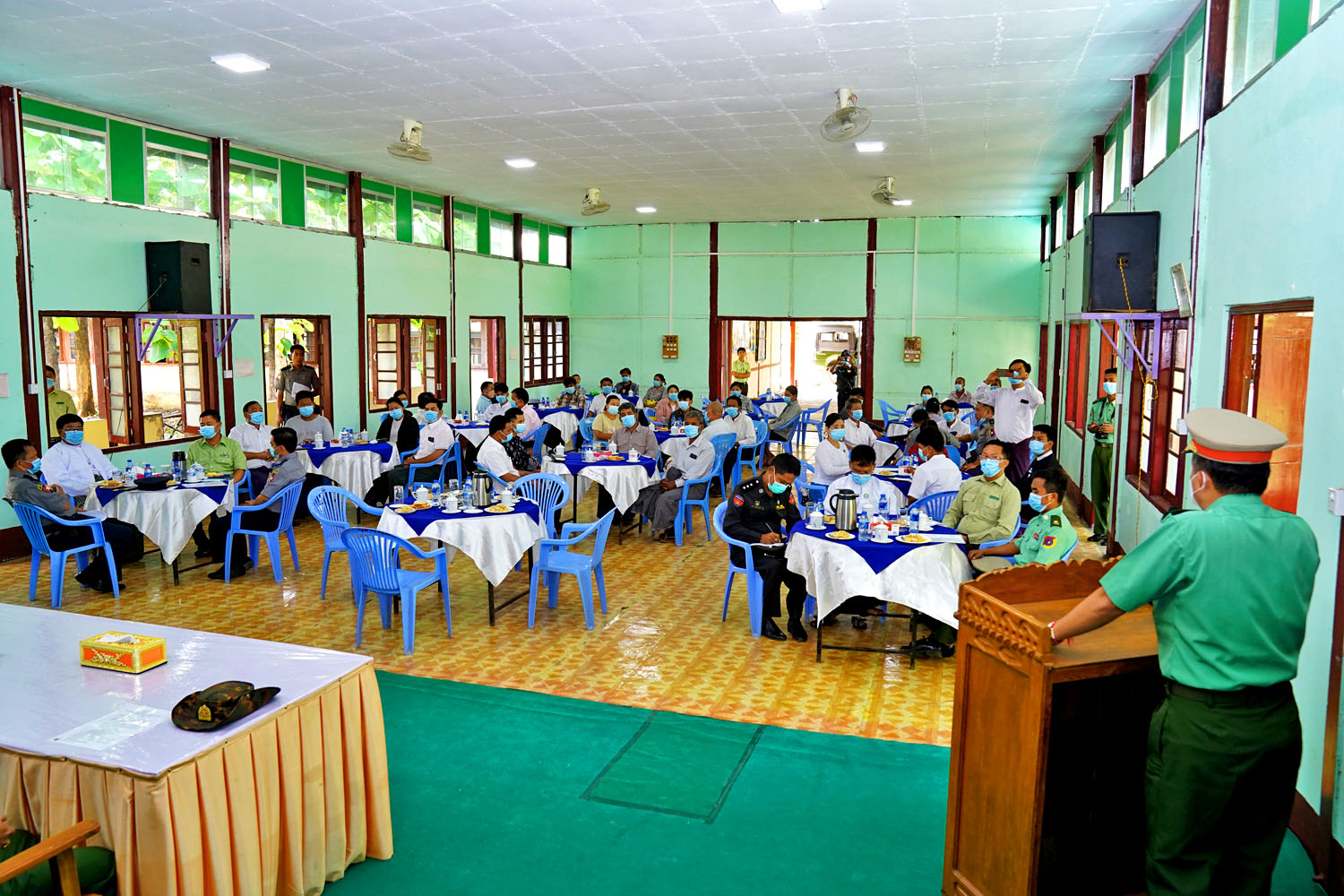 ပြစ်မှုကျူးလွန်မှုမရှိသော(PDF)သင်တန်းဆင်း အလင်းဝင်ရောက် လာသူများအား မိဘ အုပ်ထိန်းသူများထံ လွှဲပြောင်းလက်ခံပွဲ အခမ်းအနားကို ယမန်နေ့နံနက် ၉နာရီအချိန်က ငဖဲမြို့နယ် အထွေထွေအုပ်ချုပ်ရေး ဦးစီးဌာနရုံး အစည်းအဝေးခန်းမ၌ ကျင်းပရာ အလယ်ပိုင်းတိုင်း စစ်ဌာနချုပ်၊ ပဒါန်းတပ်နယ် တပ်နယ်မှူး ဗိုလ်မှူးချုပ်မျိုးသန့်၊ မကွေးတိုင်းဒေသကြီး အစိုးရအဖွဲ့ လုံခြုံရေးနှင့် နယ်စပ်ရေးရာဝန်ကြီး ဗိုလ်မှူးကြီး ကျော်ကျော်လင်း၊ မကွေးတိုင်းဒေသကြီး အစိုးရအဖွဲ့ အတွင်းရေးမှူး ဦးသန်းဆွေဝင်း၊ မင်းဘူးခရိုင် စီမံအုပ်ချုပ်ရေးအဖွဲ့ ဥက္ကဋ္ဌ ဦးထွန်းထွန်းဝင်းနှင့် တာဝန်ရှိသူများ၊ ငဖဲမြို့နယ်စီမံအုပ်ချုပ်ရေးအဖွဲ့ ဥက္ကဋ္ဌ ဦးကျော်စိုးနှင့်အဖွဲ့ဝင်များ၊ ဌာနဆိုင်ရာ တာဝန်ရှိသူများ၊ အလင်းဝင် ရောက်လာသည့် လူငယ်များနှင့် မိဘအုပ်ထိန်းသူများ တက်ရောက် ကြသည်။