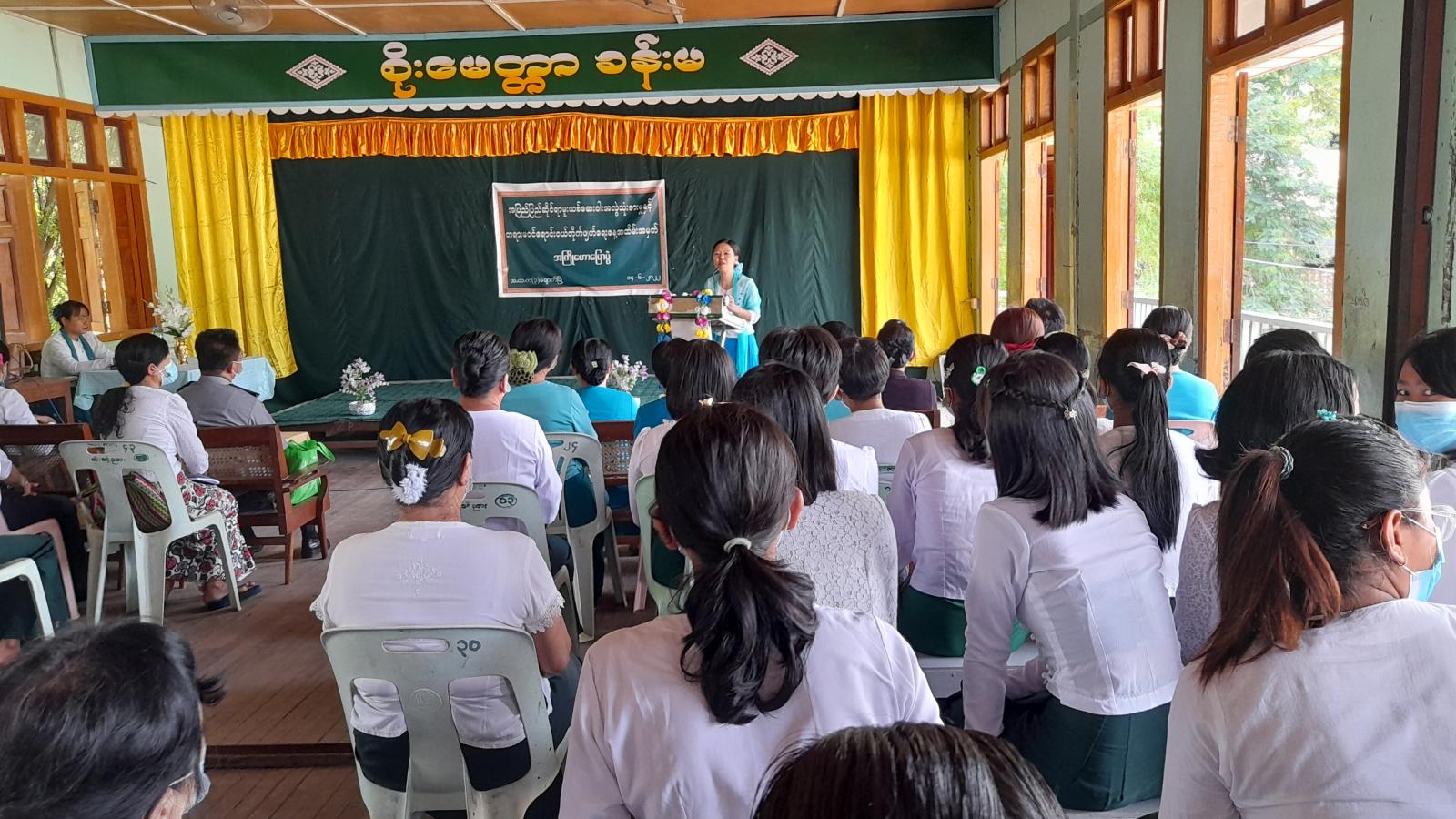 ရှေးဦးစွာ မြို့နယ်ပြန်ကြားရေးနှင့် ပြည်သူ့ဆက်ဆံရေးဦးစီးဌာ၊ ဦးစီးအရာရှိ ဒေါ်သိမ့်ဝါက"ရှောင်လေဝေးဝေးမူးယစ်ဆေး"ခေါင်းစဉ်ဖြင့် မူးယစ်ဆေးဝါးသမိုင်းကြောင်း၊ မူးယစ်ဆေးဝါးအမျိုးအစားများ၊ မူးယစ်ဆေးဝါးအန္တရာယ်နှင့် ဆိုးကျိုးများ၊ မူးယစ်ဆေးသုံးစွဲရခြင်း အကြောင်းအရင်းများကိုလည်းကောင်း၊ မြို့နယ်ဥပဒေအရာရှိဒေါ်ဖြိုးသဥ္ဇာမင်းက "မူးယစ်ဆေးဝါးအန္တရာယ်ကြီးမားပုံနှင့် ဥပဒေအကြောင်း"တို့အားလည်းကောင်း ကျောင်းသား၊ ကျောင်းသူတို့သိရှိလိုက်နာရှောင်ကြဉ်နိုင်ရန် ရှင်းလင်းပြောကြားခြင်း၊ မြို့နယ်အမျိုးသမီးရေးရာအဖွဲ့ဥက္ကဋ္ဌ ဒေါ်နန်းနွမ်ခမ်းခေါင်က "လူငယ်နှင့်မူးယစ်အန္တရာယ်" ခေါင်းစဉ်ဖြင့်လည်းကောင်း၊ အထက(၁)ကျောင်းအုပ်ဆရာမကြီး ဒေါ်ခင်စိုးမိုးက"မူးယစ်အန္တရာယ်စုပေါင်းကာကွယ်"ခေါင်းစဉ်ဖြင့်လည်းကောင်း အသီးသီးဟောပြောခဲ့ကြပြီး တက်ရောက်လာသော မြို့မရဲစခန်း ဒုတိယရဲမှူး၊ မြို့နယ်ပြန်ကြားရေးနှင့် ပြည်သူ့ဆက်ဆံရေးဦးစီးဌာန ဦးစီးအရာရှိ၊ မြို့နယ်ဥပဒေအရာရှိ၊ မြို့နယ်အမျိုးသမီးရေးရာအဖွဲ့ဥက္ကဋ္ဌနှင့် အဖွဲ့ဝင်များ၊ ကျောင်းအုပ်ဆရာမကြီး၊ ဆရာ၊ ဆရာမများနှင့်အတူ စုပေါင်းမှတ်တမ်းတင် ဓါတ်ပုံများ ရိုက်ကူးခဲ့ကြသည်။