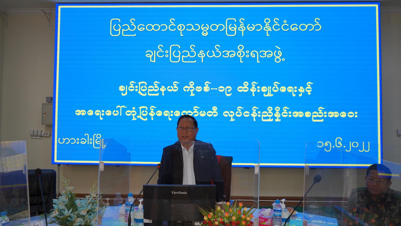 ဆက်လက်၍ ချင်းပြည်နယ်အစိုးရအဖွဲ့ရုံး ညွှန်ကြားရေးမှူး ဦးထွန်းသိန်းနှင့် ဒုတိယညွှန်ကြားရေးမှူး ဦးမြင့်လွင်တို့က ကိုဗစ်-၁၉ အသုံးစရိတ်များနှင့် ပတ်သက်၍ ရန်ပုံငွေရရှိ၊ သုံးစွဲ၊ လက်ကျန်စာရင်းများနှင့် ယခင်အပတ်အစည်းအဝေး ဆုံးဖြတ်ချက်များကို ရှင်းလင်း တင်ပြကြသည်။