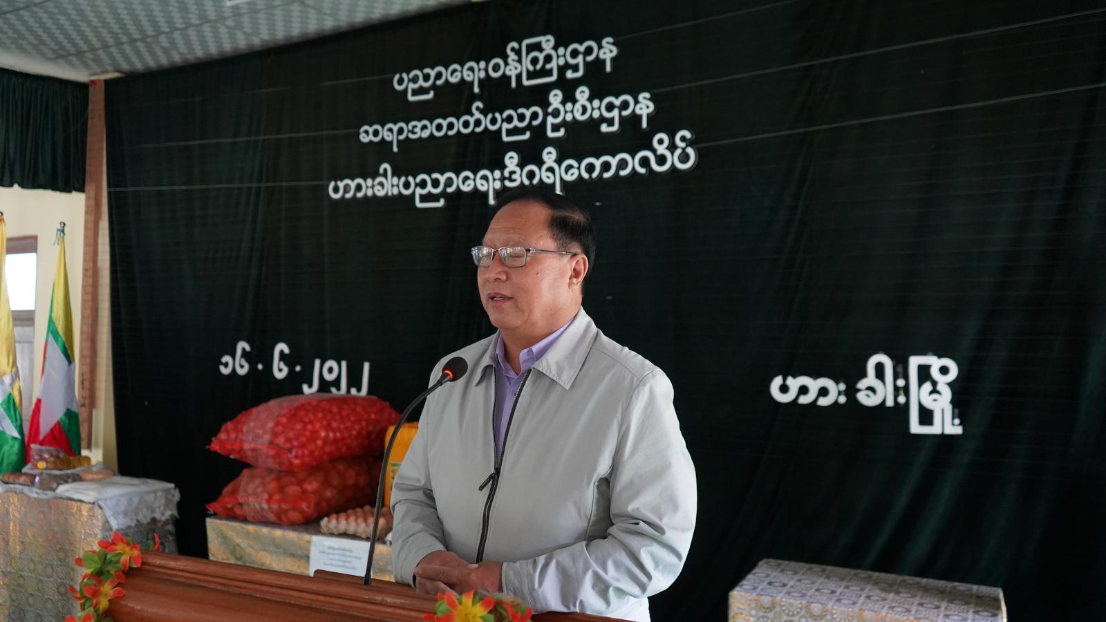 ယင်းနောက် ဟားခါးပညာရေးဒီဂရီကောလိပ် ကျောင်းအုပ်ကြီးက ယခုကဲ့သို့ ပြည်နယ်ဝန်ကြီးချုပ် နှင့် ပြည်နယ်အစိုးရအဖွဲ့ဝင် ဝန်ကြီးများက မိမိတို့ ဆရာ၊ ဆရာမများနှင့် သင်တန်းသား၊ သင်တန်းသူများကို ဂရုစိုက်ပေးသည့်အတွက် ကျေးဇူးတင်ပါကြောင်း ပြောကြားသည်။