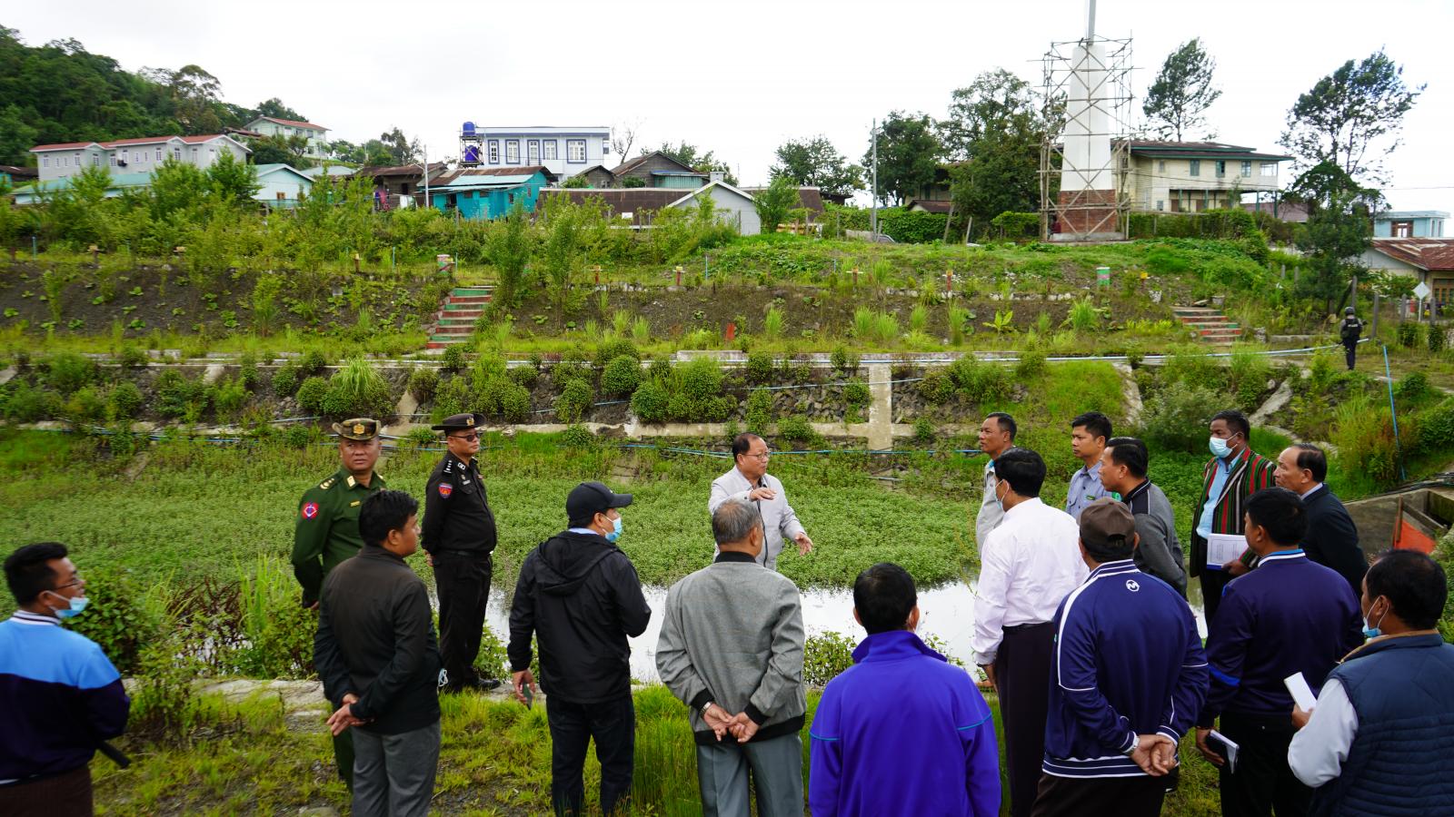 ချင်းပြည်နယ်၊ ဟားခါးမြို့၊ စျေးဟောင်းရပ်ကွက်ရှိ တော်လှန်ရေးရေကန် အဆင့်မြှင့်တင် ပြုပြင် မွမ်းမံမည့် အခြေအနေ ကို ယမန်နေ့ နံနက် ၁၀ နာရီက ချင်းပြည်နယ်ဝန်ကြီးချုပ် ဦးငွန်ဆန်းအောင်၊ ပြည်နယ်အစိုးရအဖွဲ့ဝင် ဝန်ကြီးများ၊ ပြည်နယ်ဌာနဆိုင်ရာ အကြီးအကဲများနှင့် မြို့မိမြို့ဖများက သွားရောက် ကြည့်ရှုစစ်ဆေးသည်။