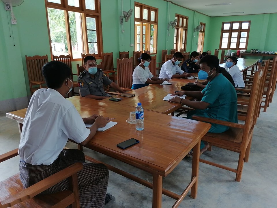 ထို့နောက် အစည်းအဝေးကို တက်ရောက်လာကြသော မြို့နယ်အဆင့် ကိုဗစ်-၁၉ ထိန်းချုပ်ရေးနှင့် အရေးပေါ်တုံ့ပြန်ရေးကော်မတီဝင်များက မိမိတို့ကဏ္ဍအလိုက် ဆောင်ရွက်ရမည့် လုပ်ငန်းများအား ရှင်းလင်းဆွေးနွေးခဲ့ကြရာ မြို့နယ်အုပ်ချုပ်ရေးမှူးက လိုအပ်သည်များကို ပေါင်းစပ်ညှိနှိုင်းဆောင်ရွက် ပေးခဲ့ကြောင်း သိရသည်။