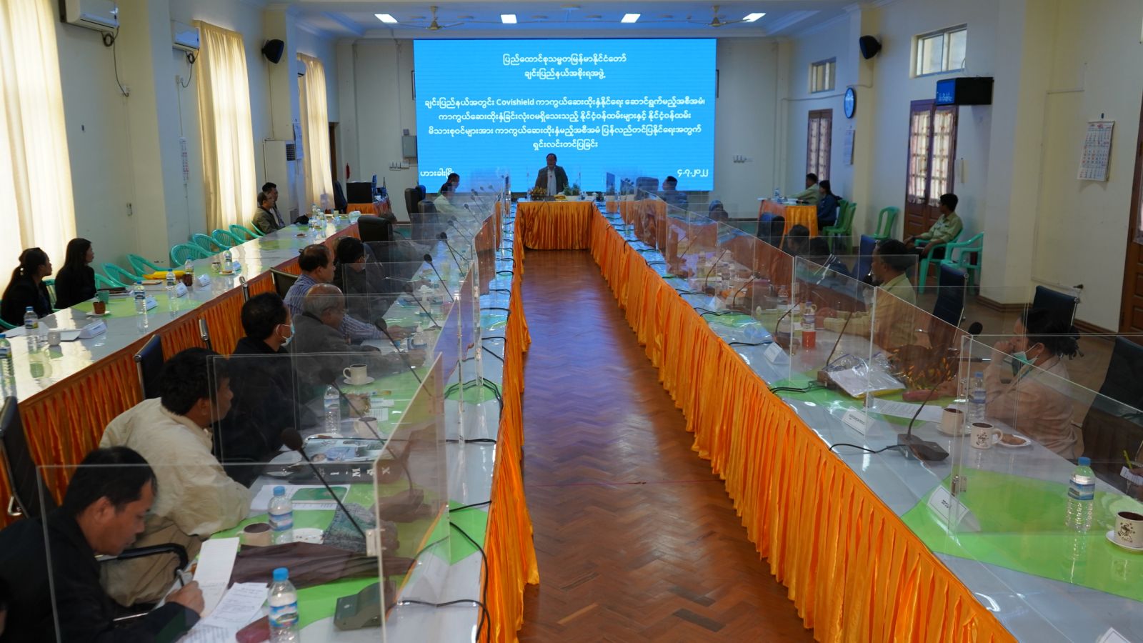 ထို့နောက် ချင်းပြည်နယ်အစိုးရအဖွဲ့ရုံး ညွှန်ကြားရေးမှူး ဦးသန်းအေးဆွေက COVISHIELD ကာကွယ်ဆေးရရှိ၊ သုံးစွဲ၊ လက်ကျန်စာရင်း အခြေအနေ၊ မြို့နယ်တစ်ခုချင်းအလိုက် COVISHIELD ကာကွယ်ဆေး ထိုးနှံနိုင်ရေးအတွက် ဆေးထိုးအဖွဲ့များဖွဲ့စည်းမှု၊ ရက်အလိုက် COVISHIELD ကာကွယ်ဆေးထိုးနှံမည့် လူဦးရေသတ်မှတ်ခြင်းနှင့် ဆေးထိုးစုရပ်များ သတ်မှတ်ထားရှိမှုနှင့် ဆောင်ရွက်မည့် အသေးစိတ်အစီအမံများ၊ ကိုဗစ်−၁၉ ရောဂါကာကွယ်ဆေးထိုးနှံခြင်း လုံးဝမရှိသေးသည့် နိုင်ငံ့ဝန်ထမ်းများနှင့် နိုင်ငံ့ဝန်ထမ်းမိသားစုဝင်များအား ကာကွယ်ဆေးထိုးနှံပေးနိုင်ရေး ဆောင်ရွက်မည့် အစီအမံများကို ရှင်းလင်းတင်ပြပြီး တက်ရောက်လာကြသည့် ဌာနဆိုင်ရာ တာဝန်ရှိသူများက ကာကွယ်ဆေးထိုးနှံရန်ကျန်ရှိသည့် နိုင်ငံ့ဝန်ထမ်းများနှင့် နိုင်ငံ့ဝန်ထမ်း မိသားစုဝင်များအား ကိုဗစ်−၁၉ ရောဂါကာကွယ်ဆေးထိုးနှံနိုင်ရေး ဆောင်ရွက်ထားရှိမှု အစီအမံများကို ဌာနတစ်ခုချင်းအလိုက် ရှင်းလင်းတင်ပြကြသည်။