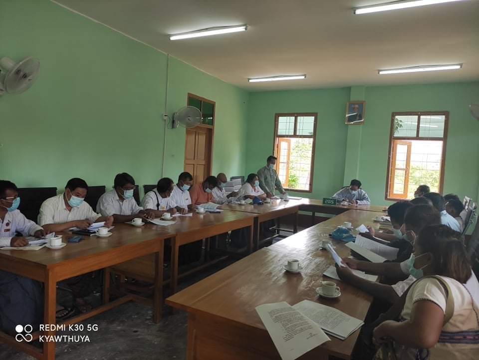ရှေးဦးစွာ မြို့နယ်ရွေးကောက်ပွဲကော်မရှင်အဖွဲ့ခွဲဥက္ကဋ္ဌ ဦးအောင်ထွန်းက အစည်းအဝေး ပြုလုပ် ရခြင်းနှင့် စပ်လျဉ်း၍ ရှင်းလင်းပြောကြားရာတွင် ရွေးကောက်ပွဲဆိုင်ရာ စုဝေး ဟောပြောခြင်းနှင့် မဲဆွယ်စည်းရုံးရာ၌ ယခုကာလသည် COVID-19 ရောဂါ ဖြစ်ပွားသည့် အခြေအနေဖြစ်၍ ကျန်းမာရေးနှင့်အားကစားဝန်ကြီးဌာနမှ ထုတ်ပြန်ထားသည့် ညွှန်ကြားချက်နှင့် အညီ အထူးလိုက်နာ ဆောင်ရွက်ရန်လိုအပ်ကြောင်း၊ မဲဆွယ်စည်းရုံးသည့်နေရာတွင် တည်ဆဲဥပဒေ၊ နည်းဥပဒေနှင့် အညီ လိုက်နာရမည်ဖြစ်ကြောင်း ပြောကြားခဲ့သည်။