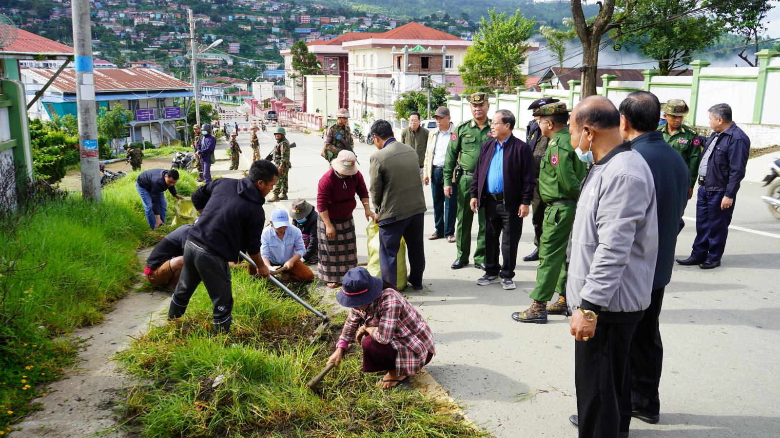 ထိုသို့ ပြည်သူ့အကျိုးပြုစုပေါင်းသန့်ရှင်းရေး ဆေင်ရွက်ရာတွင် နယ်မြေခံတပ်ရင်းတပ်ဖွဲ့များမှ တပ်မတော်သားများ၊ မြန်မာနိုင်ငံရဲတပ်ဖွဲ့နှင့် ဌာနဆိုင်ရာဝန်ထမ်းများ စုစုပေါင်းအင်အား (၃၀၀) ကျော်က မြို့ပြသန့်ရှင်းသာယာလှပရေးအတွက် ပြည်နယ်အစိုးရအဖွဲ့ရုံးမှ ပြည်နယ်လွှတ်တော်ရုံး အကြား ဗိုလ်ချုပ်လမ်းမကြီးတလျှောက် လမ်းဘေးဝဲယာရှိ ပေါင်းမြက်များရှင်းလင်းခြင်း၊ အမှိုက် ကောက်ခြင်းနှင့် ဟားခါးပြည်သူ့ဆေးရုံဝင်းအတွင်း ခြုံနွယ်ပိတ်ပေါင်းများနှင့် ပေါင်းမြတ်များ ခုတ်ထွင်ရှင်းလင်းခြင်းတို့ကို အဖွဲ့ (၂) ခွဲ၍ စုပေါင်းဆောင်ရွက်ကြသည်။
