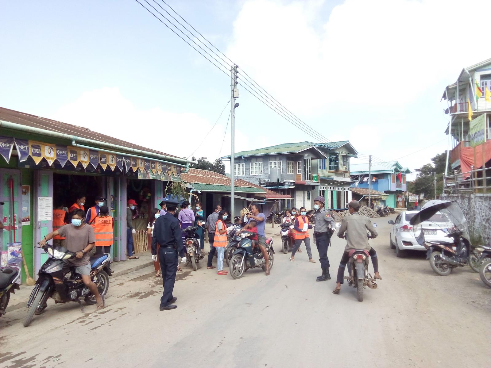 ချင်းပြည်နယ်၊ တွန်းဇံမြို့၌ နေအိမ်ပြင်ပထွက်ခွာသူများအား Mask များတပ်ဆင်ရန် အသိပညာပေးခြင်းနှင့် Mask များ အခမဲ့ ဖြန့်ဝေခြင်းကို ယမန်နေ့နံနက်(၉)နာရီက ပူးပေါင်း ဆောင်ရွက်ခဲ့ကြသည်။