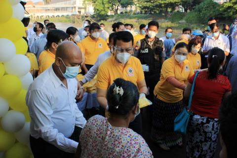 ရန်ကုန်(ပန်းဆိုးတန်း) ဆိပ်ကမ်း၌ Stop COVID-19 အဝါရောင် Campaign လူထုလှုပ်ရှားမှု ဆောင်ရွက်