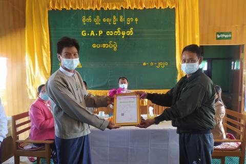 နောင်ချိုမြို့နယ်အတွင်းရှိ တောင်သူများအား စိုက်ပျိုးရေးဦးစီးဌာနမှ G.A.P လက်မှတ်များပေးအပ်