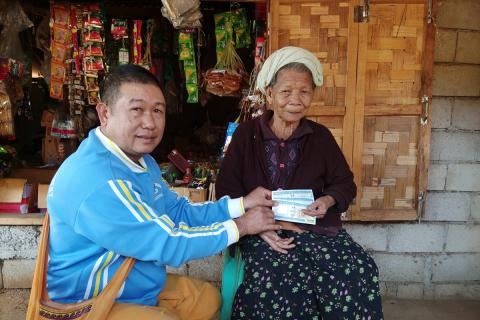 ဟိုပန်ကျေးရွာအုပ်စုတွင် အသက်(၈၀)နှင့်(၈၅)နှစ်ကြား သက်ကြီးဘိုးဘွားများအား ငွေသားထောက်ပံ့ခြင်း ဆောင်ရွက်
