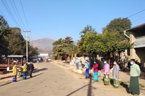 နမ္မတူမြို့နယ်၊ ကိုဗစ်-၁၉ရောဂါ ကာကွယ်ထိန်းချုပ်ရေးနှင့်အရေးပေါ်တုံ့ပြန်ရေးကော်မတီမှ မြို့နယ် အတွင်း ကိုဗစ်-၁၉ရောဂါ ကာကွယ်ထိန်းချုပ်နိုင်ရေးအတွက် ပါးစပ်နှင့်နှာခေါင်းစည်း (Mask) တစ်ခု လျှင် (၂၀၀)ကျပ်နှုန်း ဒဏ်ငွေရိုက်ကာ ခုဝယ်ခုတပ်စနစ်ဖြင့် ကြပ်မတ်ဆောင်ရွက် ခြင်းကို ယနေ့ နံနက် (၈)နာရီအချိန်ခန့်က ရှမ်းပြည်နယ် (မြောက်ပိုင်း)၊ ကျောက်မဲခရိုင်၊ နမ္မတူမြို့နယ်၊ မြို့မဈေးအနီးရှိ ဗိုလ်ချုပ်လမ်းနှင့် ဗိုလ်ချုပ်လမ်းဆုံတို့၌ ဆောင်ရွက်ခဲ့ပါသည်။