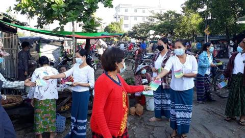 ဖျာပုံမြို့၌ (၇၃) နှစ်မြောက် လွတ်လပ်ရေးနေ့ အထိမ်းအမှတ် သတင်းစကား လက်ကမ်း စာစောင်များ အခမဲ့ဖြန့်ဝေ