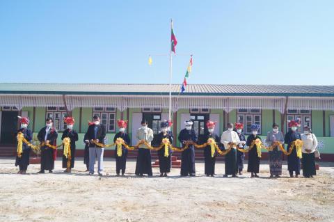ပင်လောင်းမြို့နယ်၌ စေတနာအဖွဲ့နှင့် ဒေသခံများ ပူးပေါင်းဆောက်လုပ်သော ကျောင်းဆောင်သစ်လွှဲပြောင်းပေးအပ်
