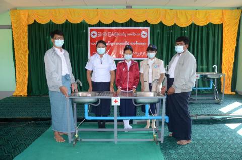 သာစည်မြို့နယ်တွင် မြန်မာနိုင်ငံကြက်ခြေနီအသင်းမှ အခြေခံပညာကျောင်းများသို့ လှူဒါန်းထောက်ပံ့သော ခြေနင်းပါလက်ဆေးရေကန်များလွှဲပြောင်းပေးအပ်