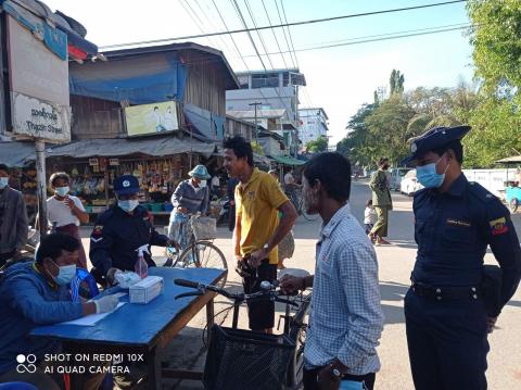 အင်းစိန်မြို့နယ်၌ မြို့ဝင်၊ မြို့ထွက်တွင် ပြည်သူများ နေအိမ်ပြင်ပသို့ မလိုလားအပ်ဘဲ သွားလာခြင်း မရှိစေရေးအတွက် ကြပ်မတ်စစ်ဆေး